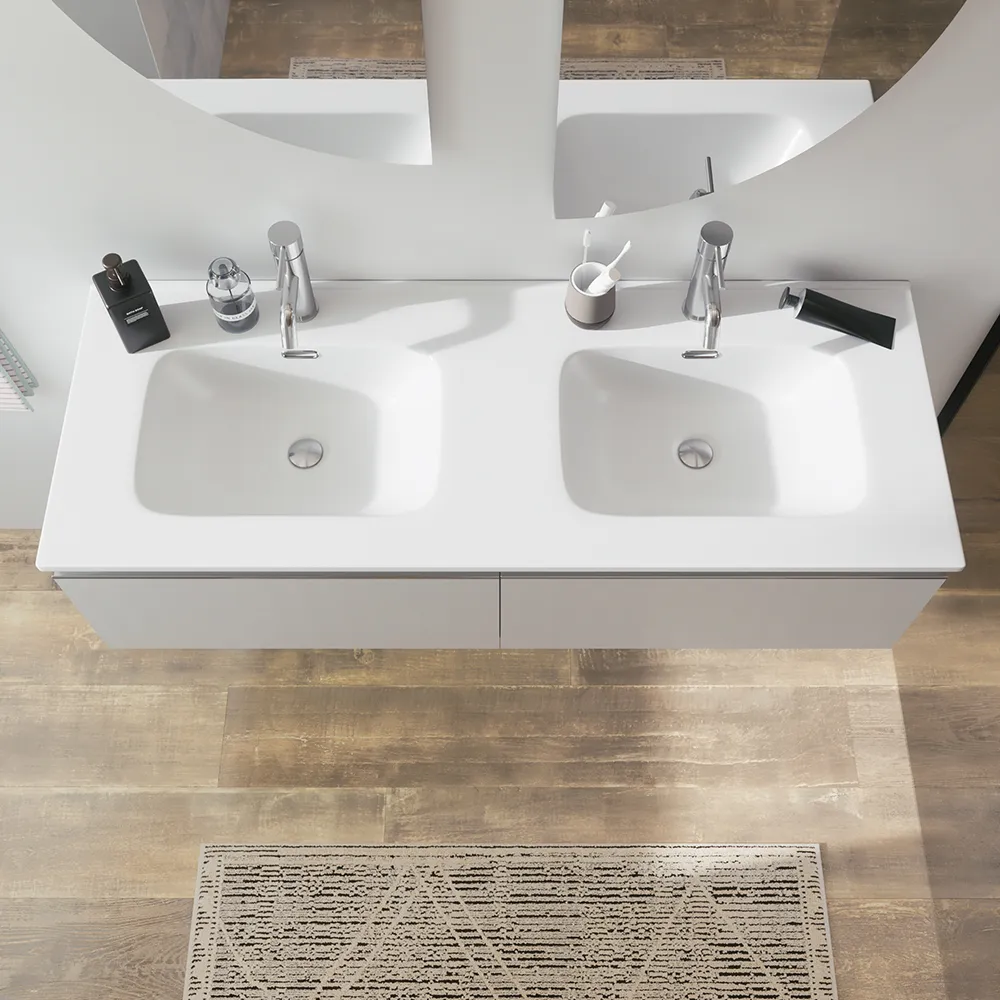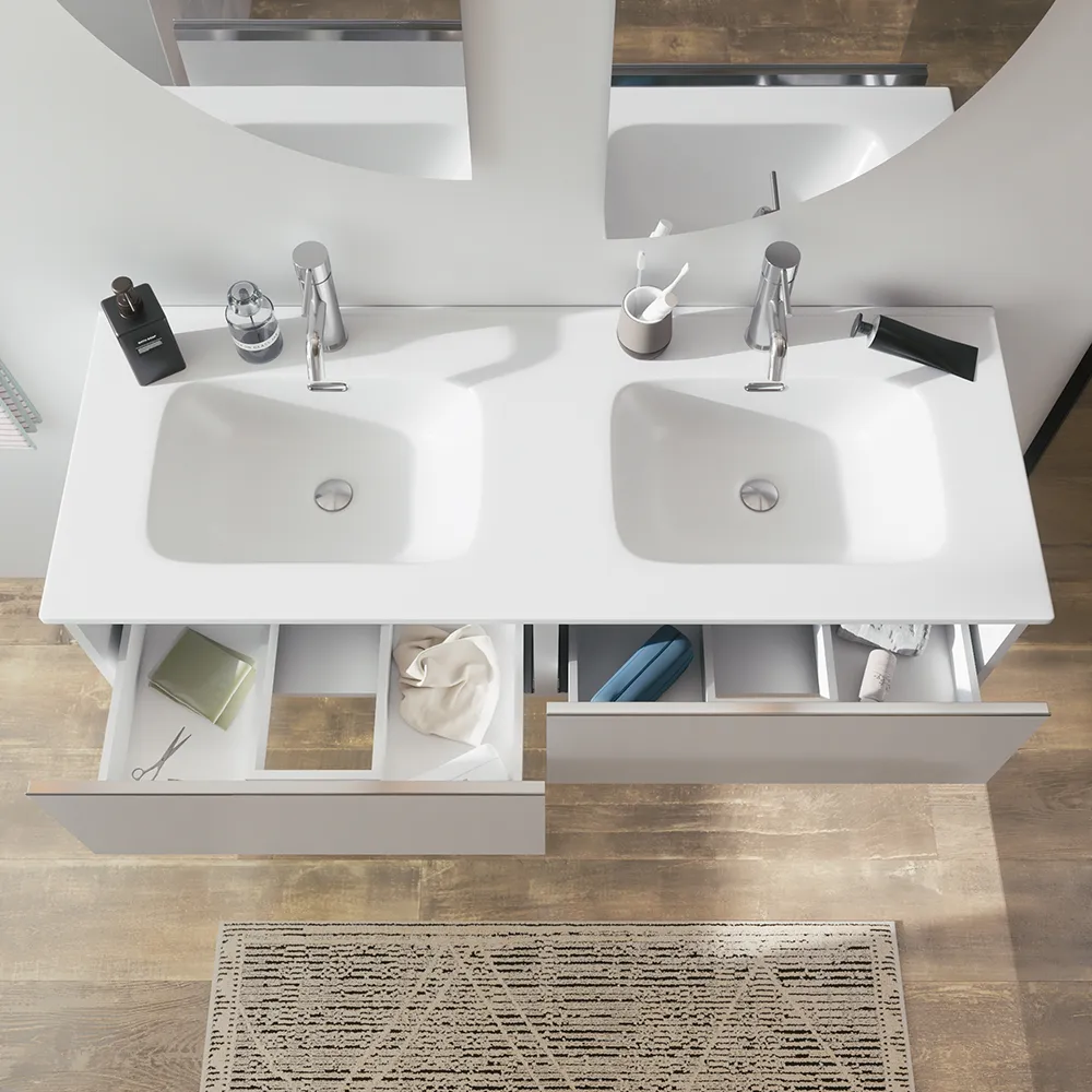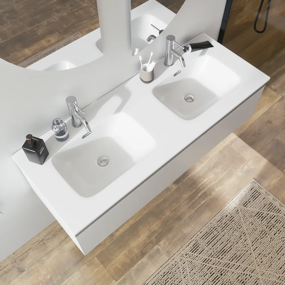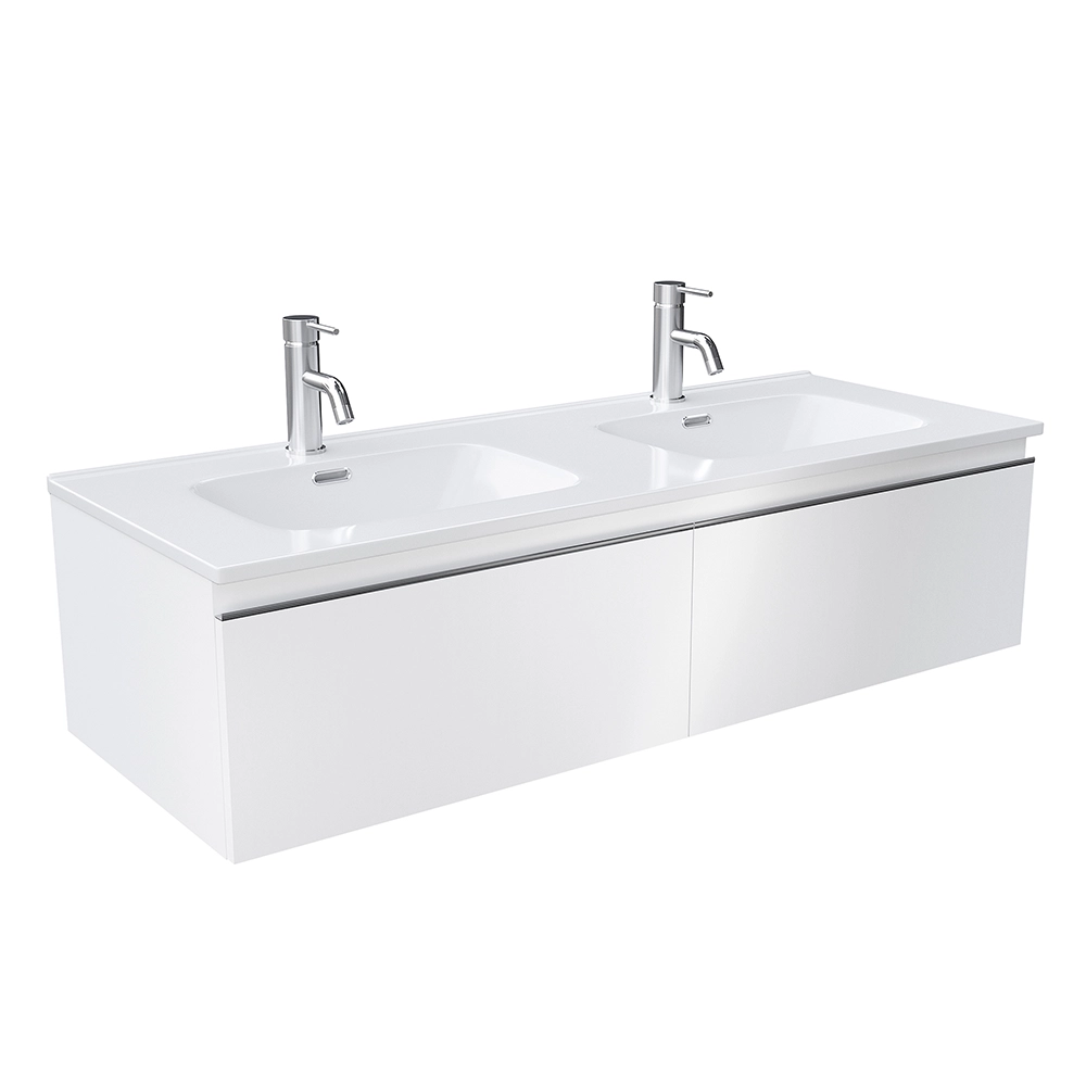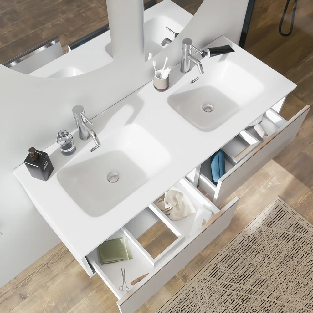 Mobile bagno sospeso 120cm con lavabo doppia vasca in ceramica bianco opaco | Darwin