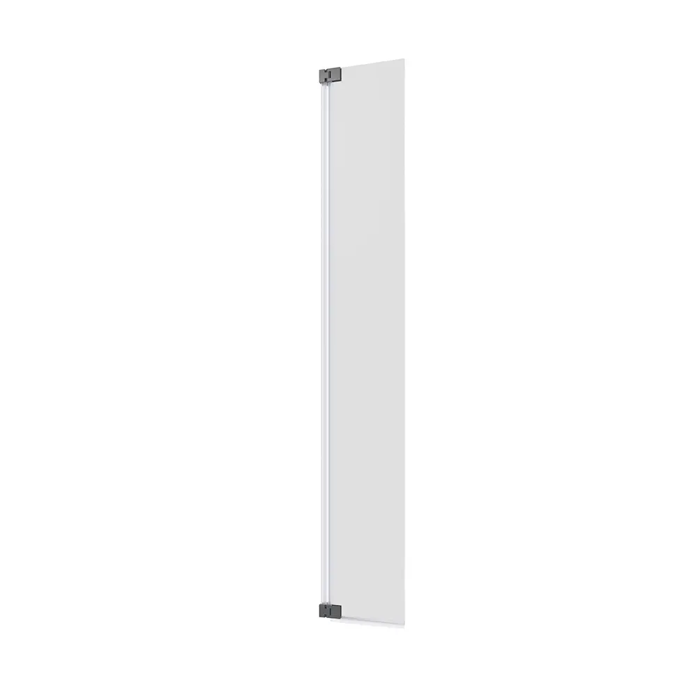 La parete doccia Keros è dotata di un'anta girevole paraspruzzi da 30 cm. Questo componente aggiuntivo offre versatilità nel tuo utilizzo quotidiano della doccia, consentendo di evitare schizzi d'acqua indesiderati nel resto del bagno.