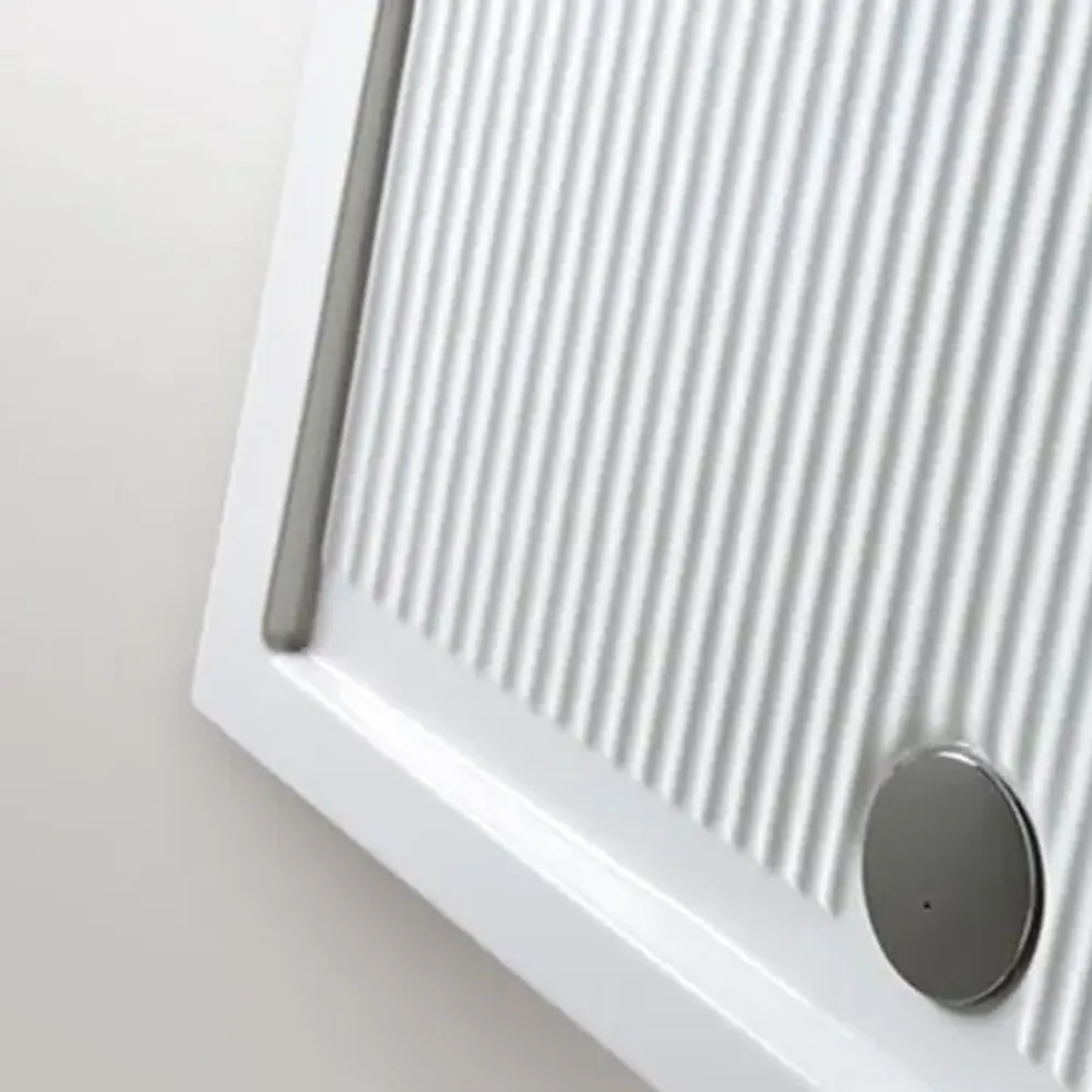 Grazie alla superficie antiscivolo e alla pendenza di 3°, garantisce un deflusso efficiente dell’acqua e una doccia sempre sicura. Il suo design in appoggio semplifica l’installazione, adattandosi perfettamente a ogni ambiente bagno.