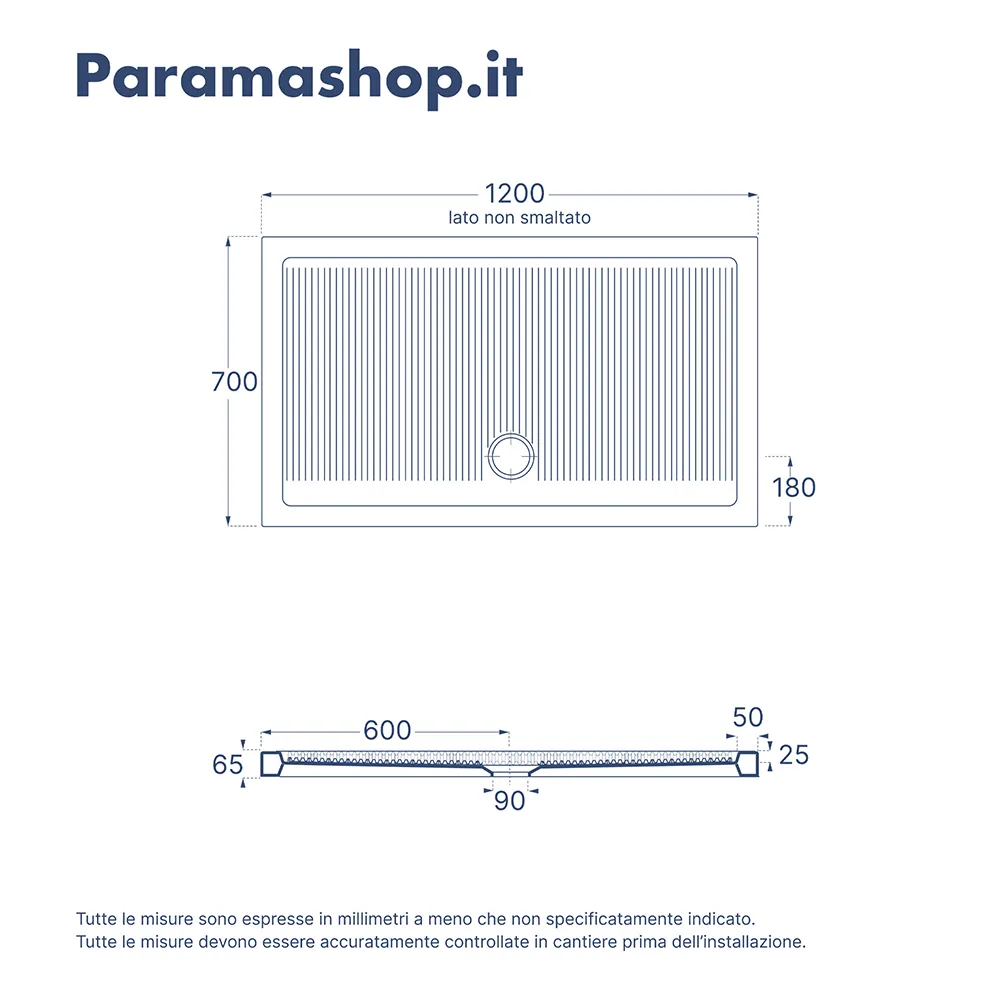 La piletta di scarico non è inclusa, ma è acquistabile separatamente. (Cod.art. AI01DRA001)