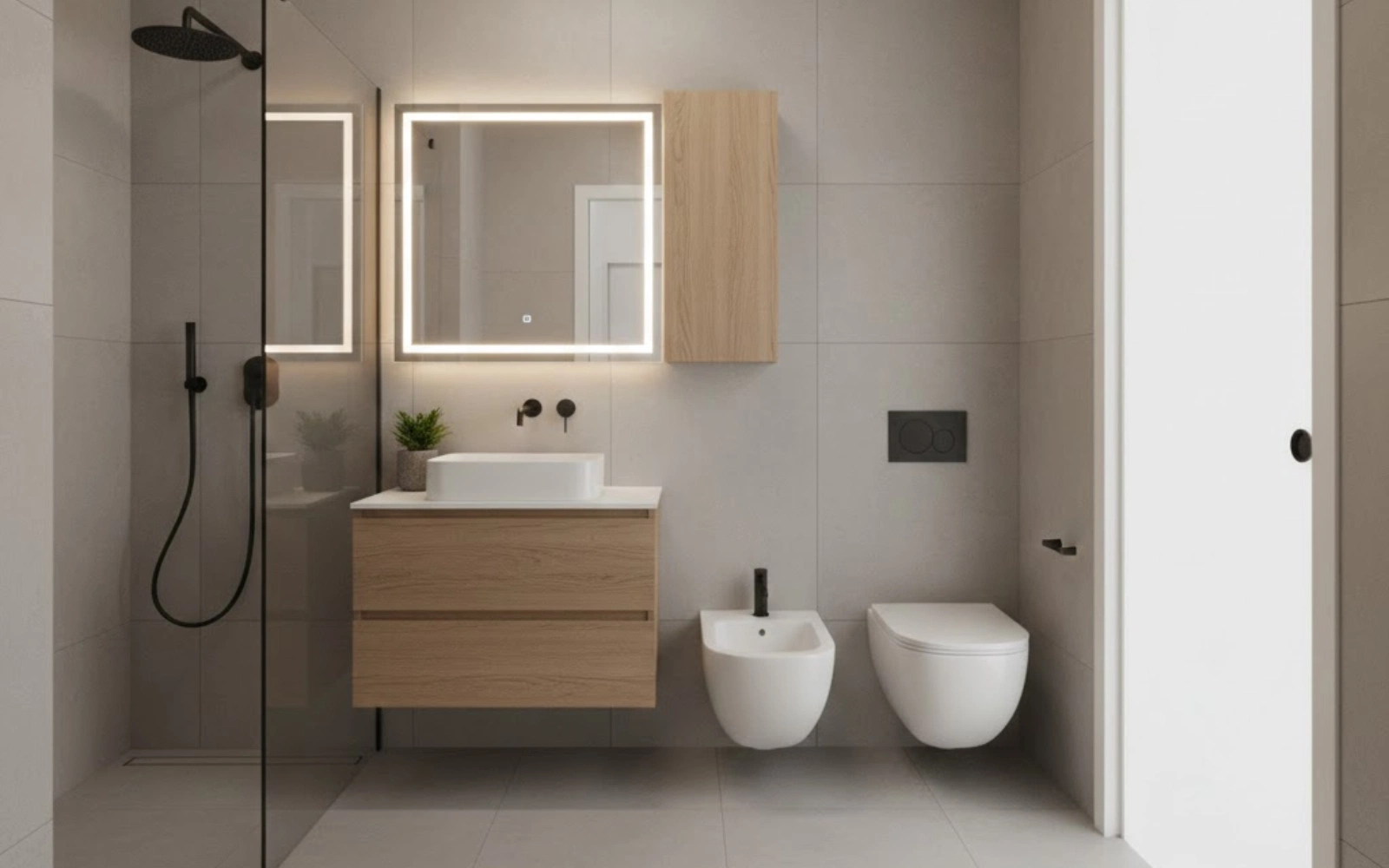 - Soluzioni d’arredo: sanitari sospesi per liberare pavimento e ampliare lo spazio visivo.