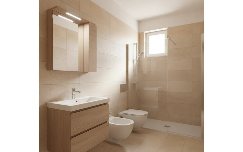 Per un bagno ospiti di soli 2–3 m², l’obiettivo è creare luminosità e ordine. Scegli un mobile da 60 cm poco profondo e sanitari compatti per ottimizzare ogni centimetro disponibile. Un box doccia quadrato da 70–80 cm garantisce praticità senza sacrificare il comfort.