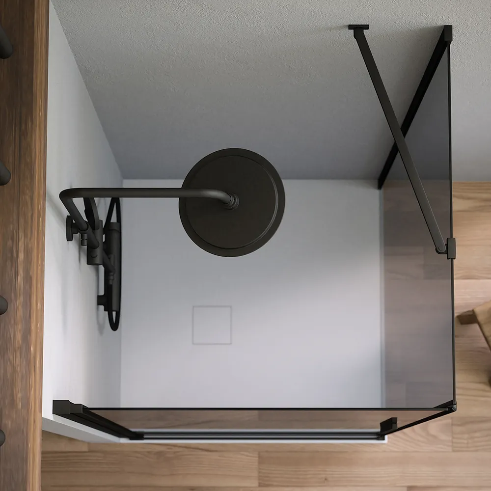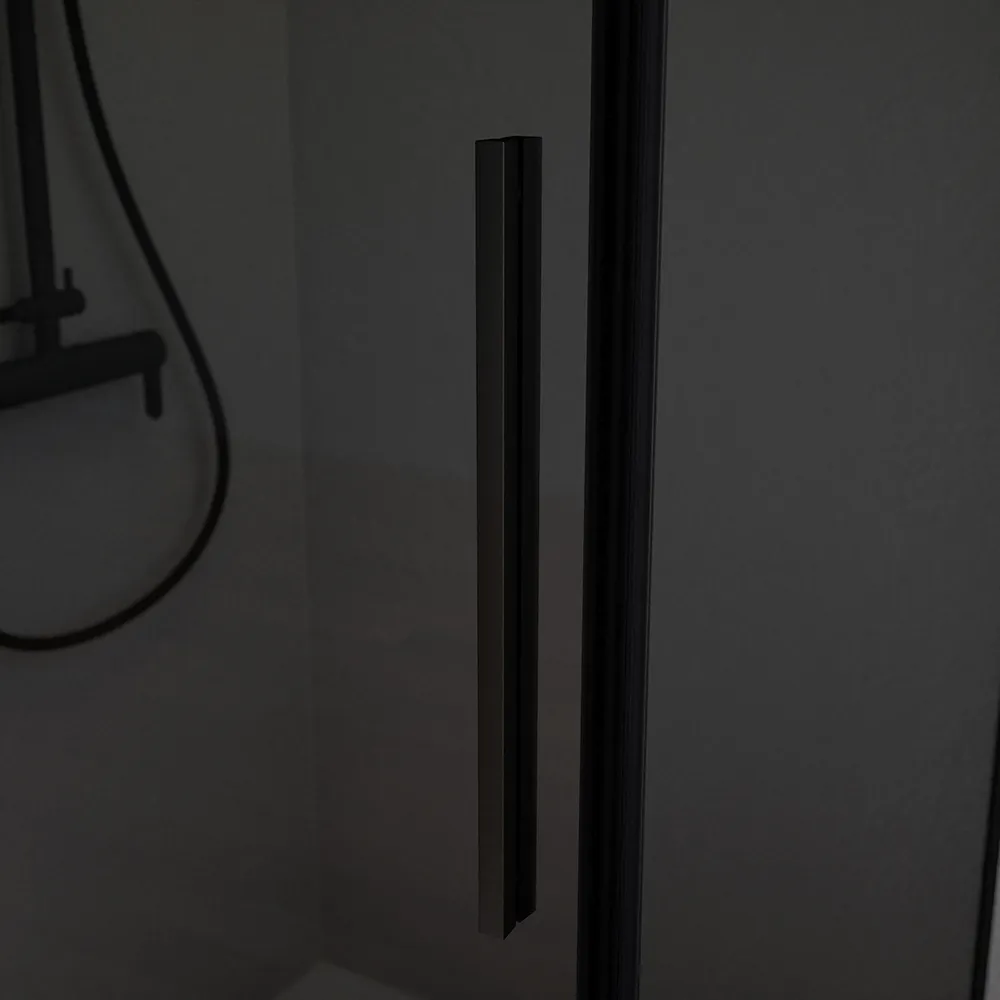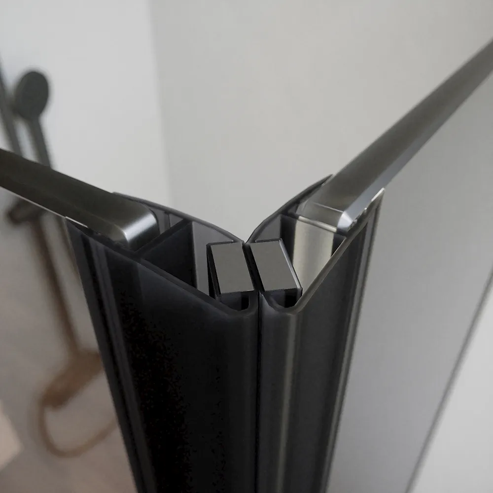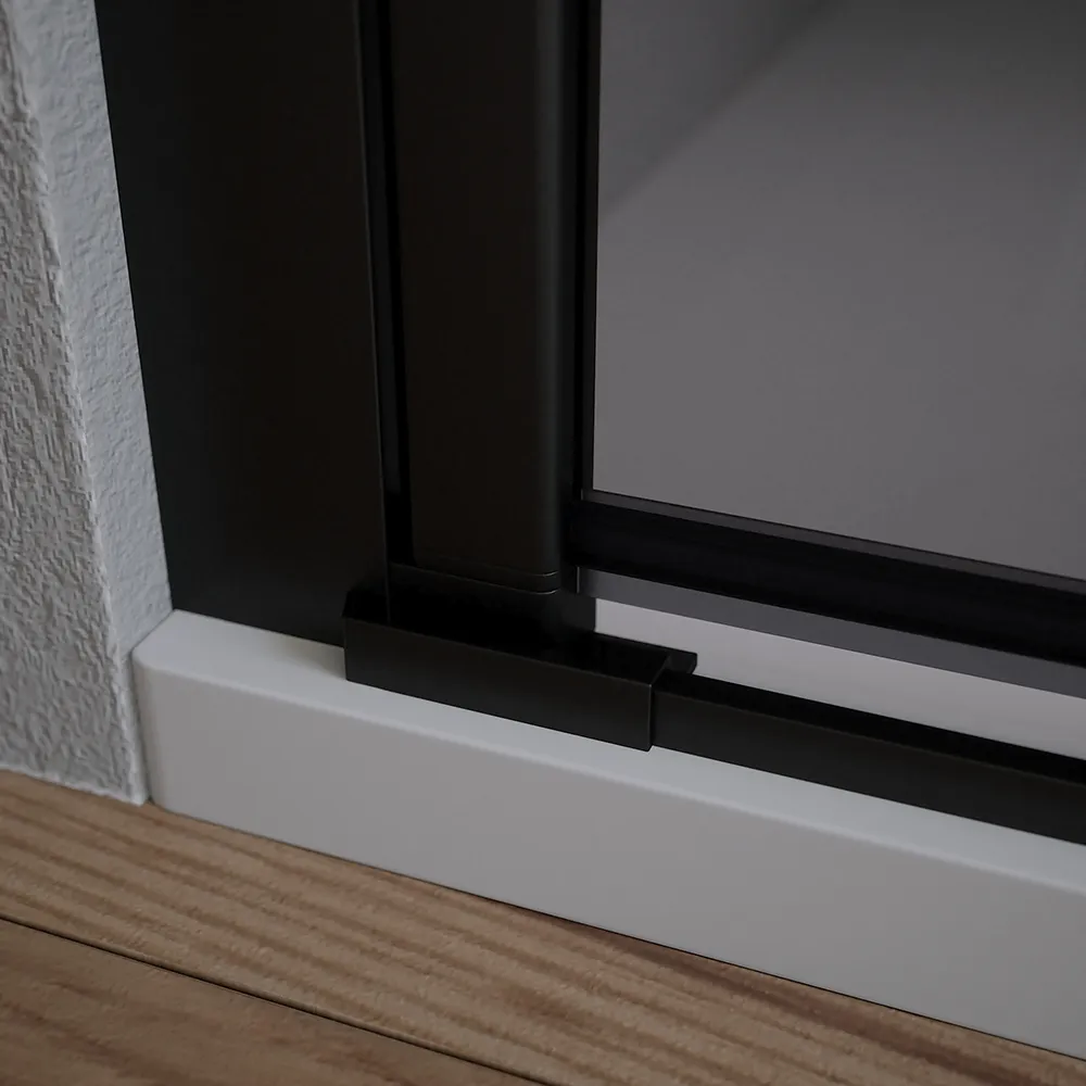 I profili in alluminio nero opaco donano al box un aspetto moderno e raffinato, con una finitura opaca che valorizza il design contemporaneo dell’ambiente bagno.