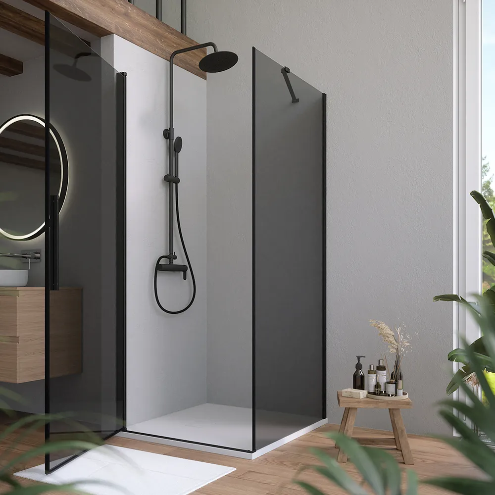 Il vetro temperato fumè da 6 mm è dotato di trattamento anticalcare, che facilita la pulizia e mantiene il vetro sempre brillante, prevenendo la formazione di aloni e depositi. Il vetro fumè offre un’eccellente privacy unita a un’estetica moderna e sofisticata.