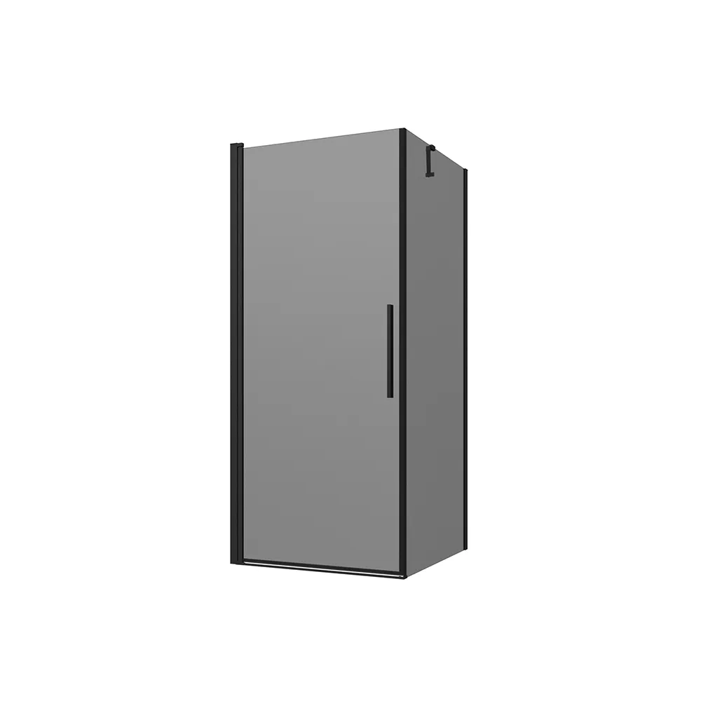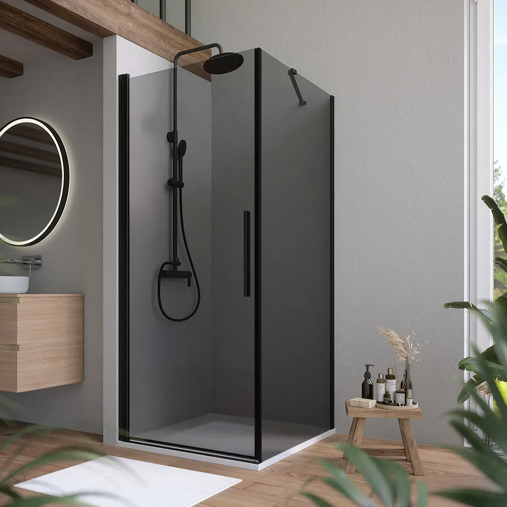 Box doccia 100x80cm con apertura a battente e parete fissa, profili nero opaco e vetro da 6mm fumè h195 | Elba