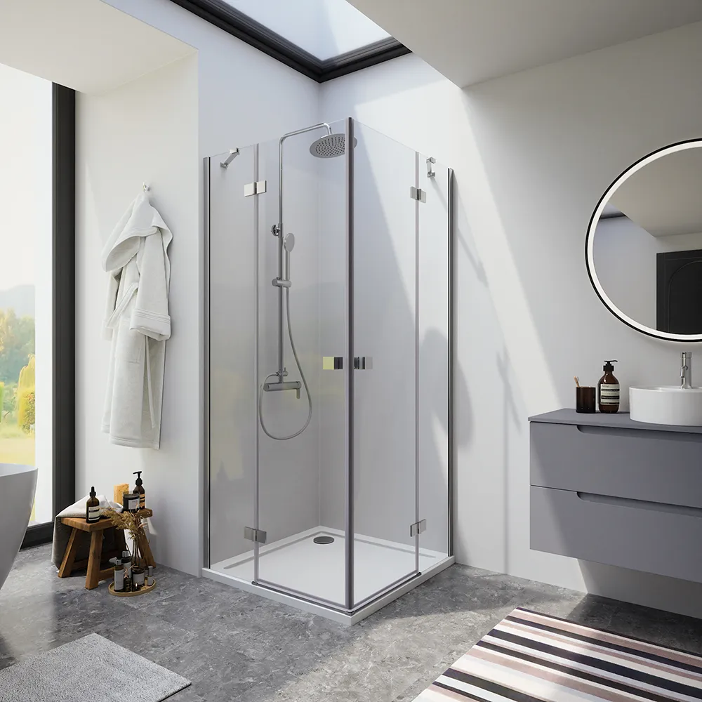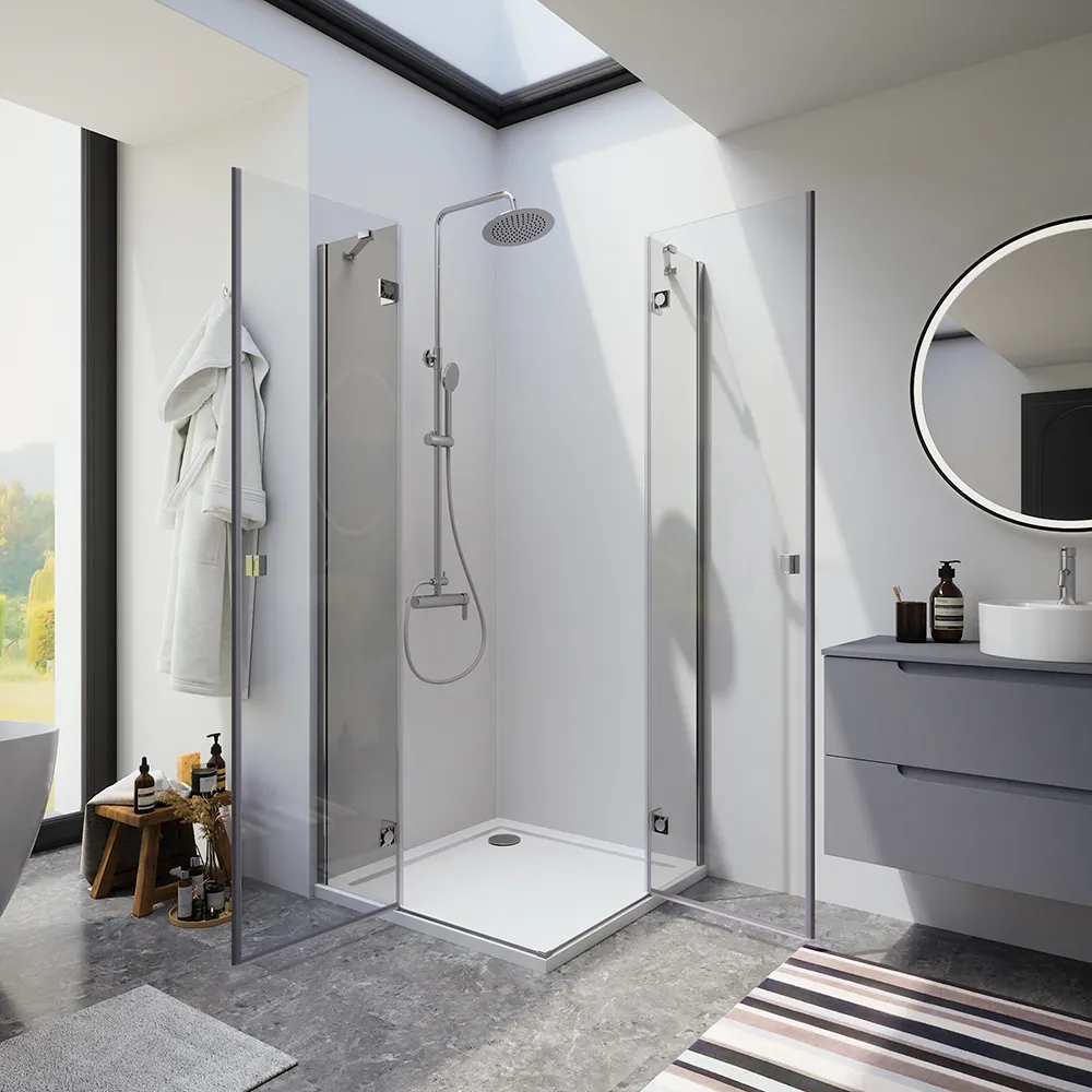 Box doccia 110x100cm doppio battente con cerniere profili cromati e vetro da 8mm trasparente h195 | Fiji