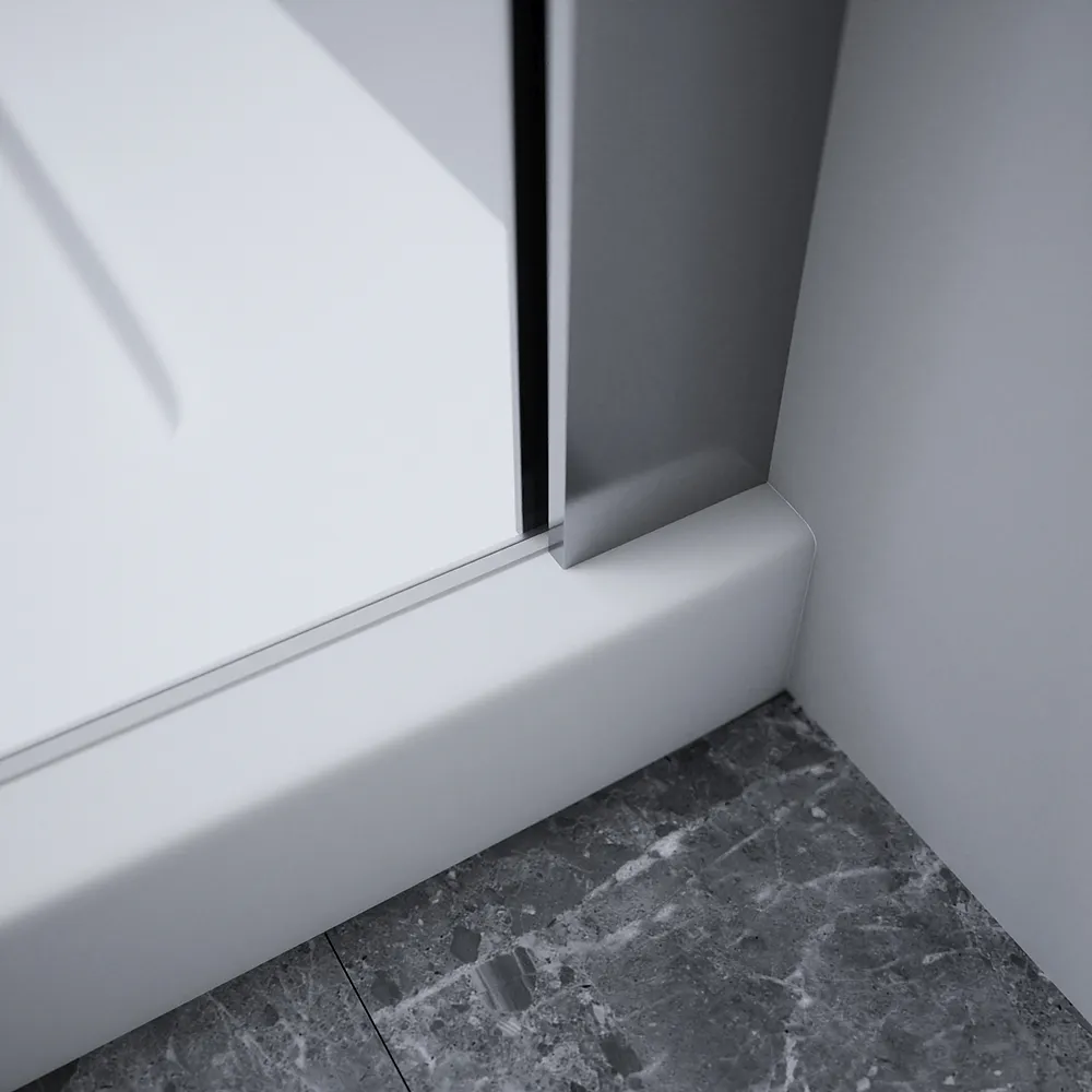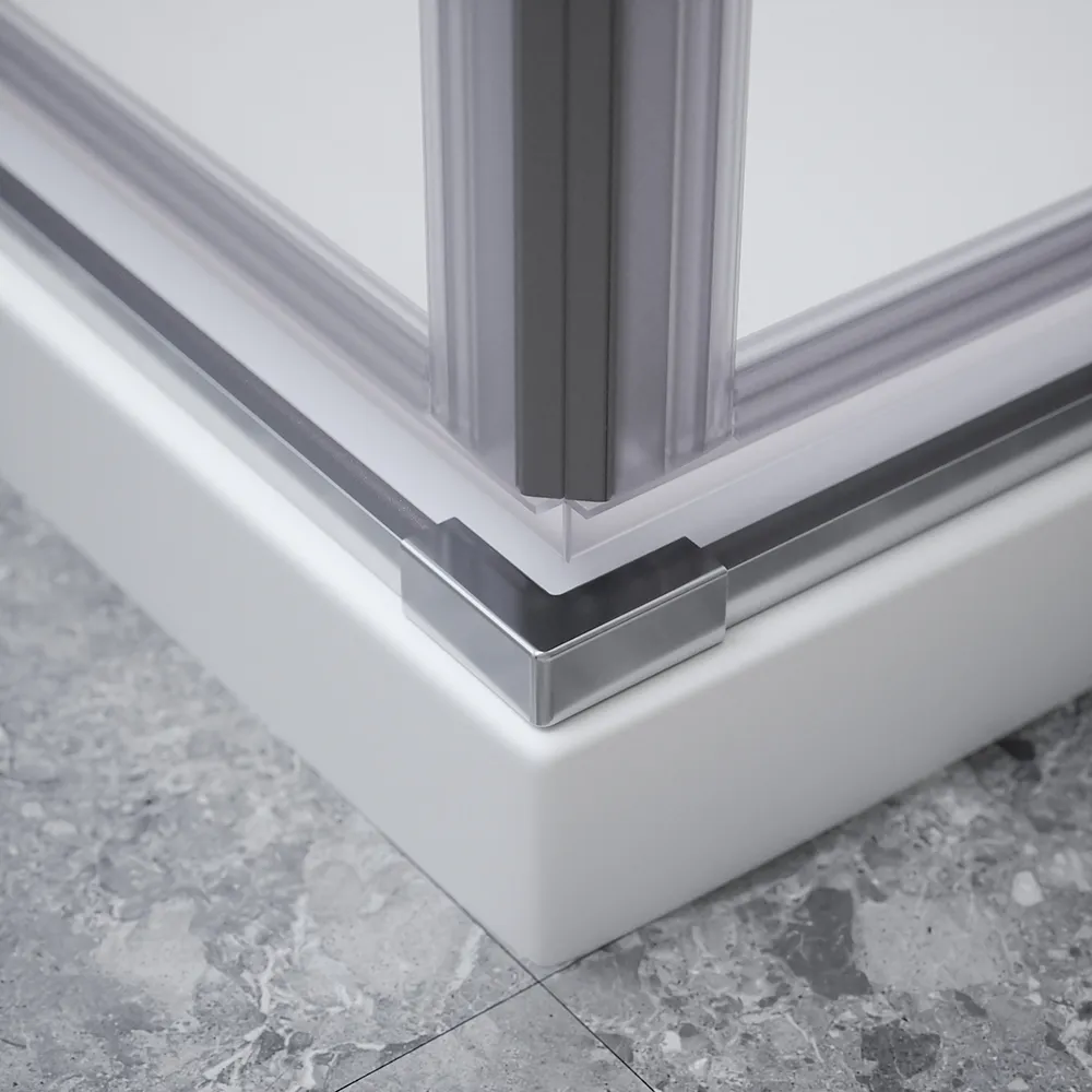 Il vetro trasparente è uno degli elementi distintivi di questo box doccia. Con uno spessore di 8mm garantisce solidità e robustezza ed in più, grazie al trattamento anticalcare, il vetro resiste efficacemente alle macchie di calcare e ai residui di sapone, semplificando le operazioni di pulizia e mantenendo la cabina doccia sempre in perfette condizioni.