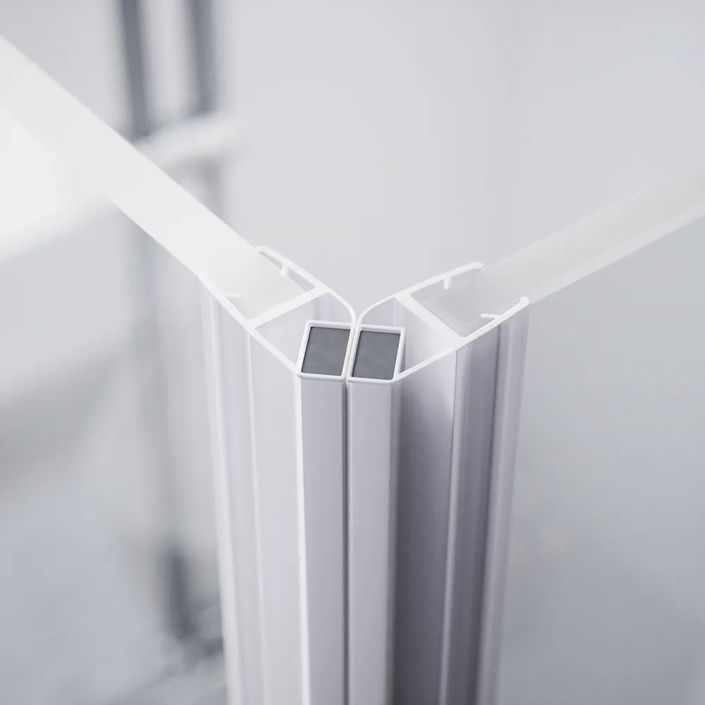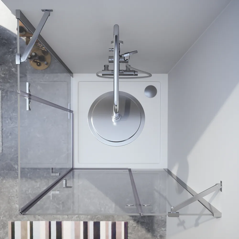 Questo box doccia angolare è composto da due porte a battente una con apertura a destra da 110cm e l'altra con apertura a sinistra da 100cm. Per entrambe le porte viene fornita una barra di supporto della lunghezza di 35cm per garantire maggiore robustezza e solidità al box doccia. L'elemento distintivo di queste porte doccia è la presenza di un pannello fisso e una parte mobile che si apre grazie alle cerniere. Questa configurazione ottimizza lo spazio disponibile, consentendo un facile accesso alla zona doccia.