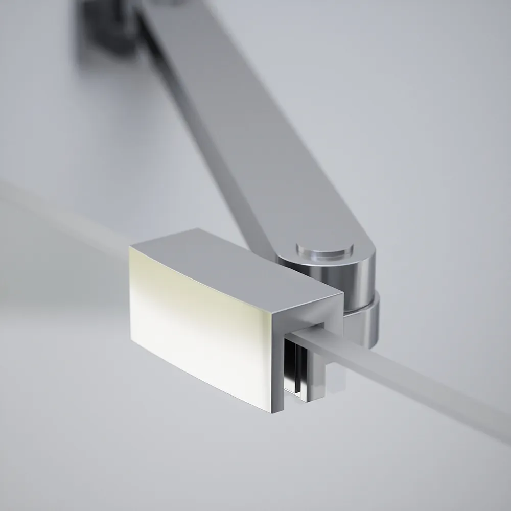 I profili in alluminio cromato conferiscono un aspetto moderno e luminoso, perfetto per ambienti dal design contemporaneo. Le cerniere in ottone creano un contrasto affascinante e di classe, aggiungendo un tocco di raffinatezza. Questo accostamento di materiali di alta qualità non solo migliora l'estetica, ma garantisce anche resistenza e durata nel tempo.
