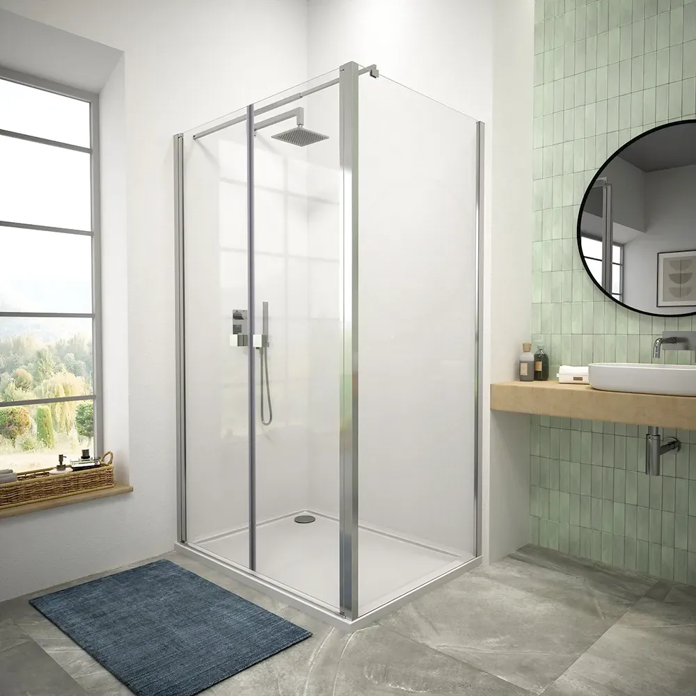 Box doccia 120x80 cm porta saloon e parete fissa profili cromati e vetro da 8mm trasparente h195 | Fiji