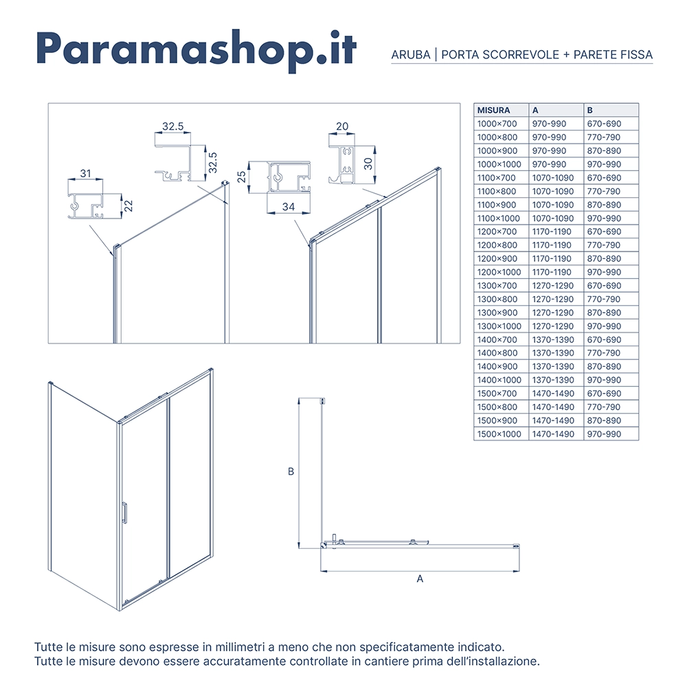 | Parete fissa: | 100cm |