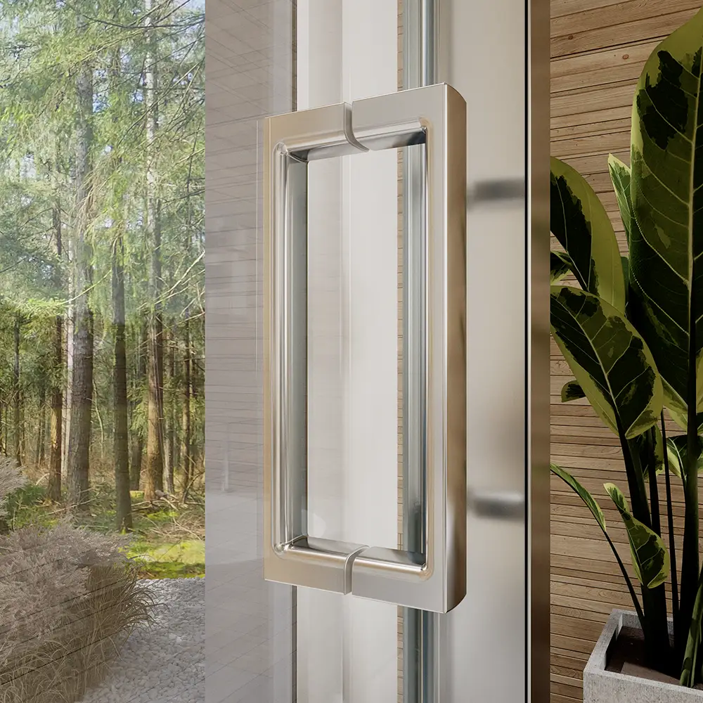 I profili cromati in alluminio anodizzato conferiscono un tocco di raffinatezza alla struttura, mentre la maniglia squadrata in ABS cromato non solo aggiunge stile, ma facilita anche l'accesso e l'uscita dalla doccia. Ogni dettaglio è pensato per unire stile e funzionalità, offrendo un'esperienza di doccia all'avanguardia.