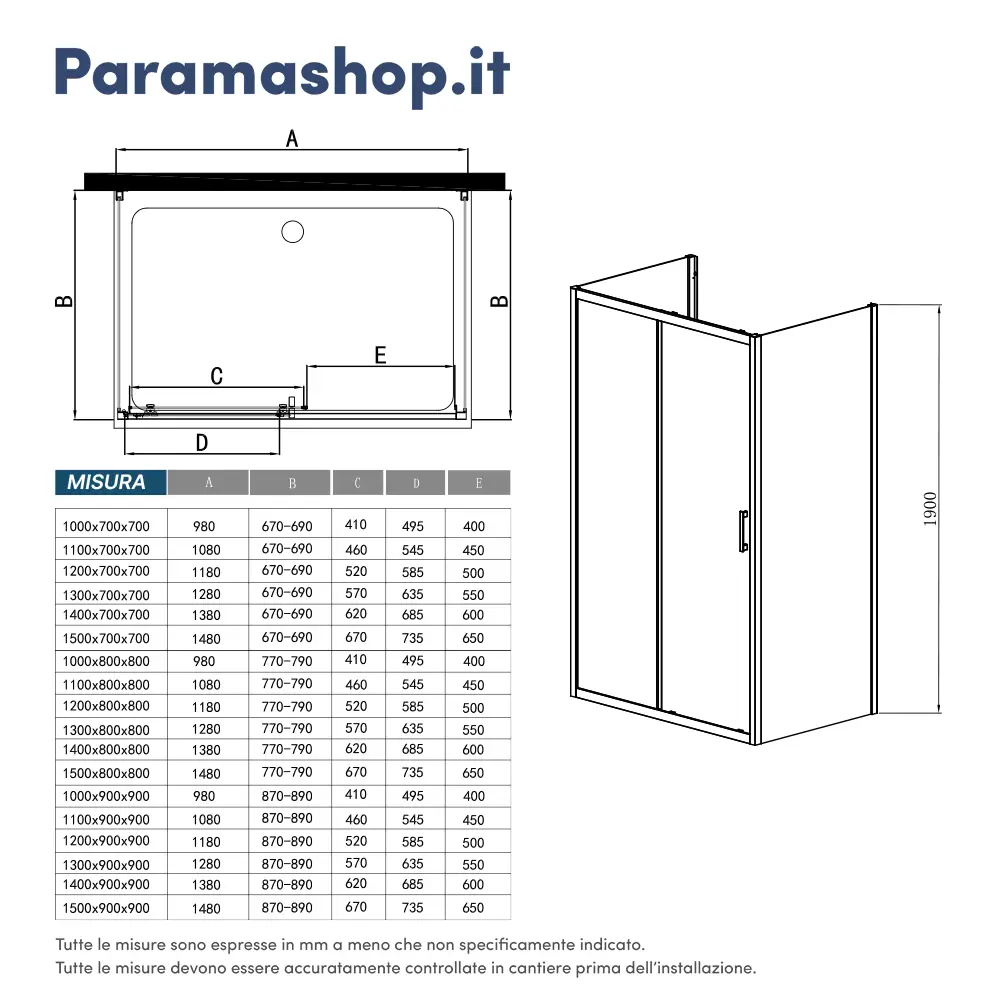 Box doccia 3 lati 90x150x90 cm con porta scorrevole e vetro temperato 6mm trasparente | Ustica