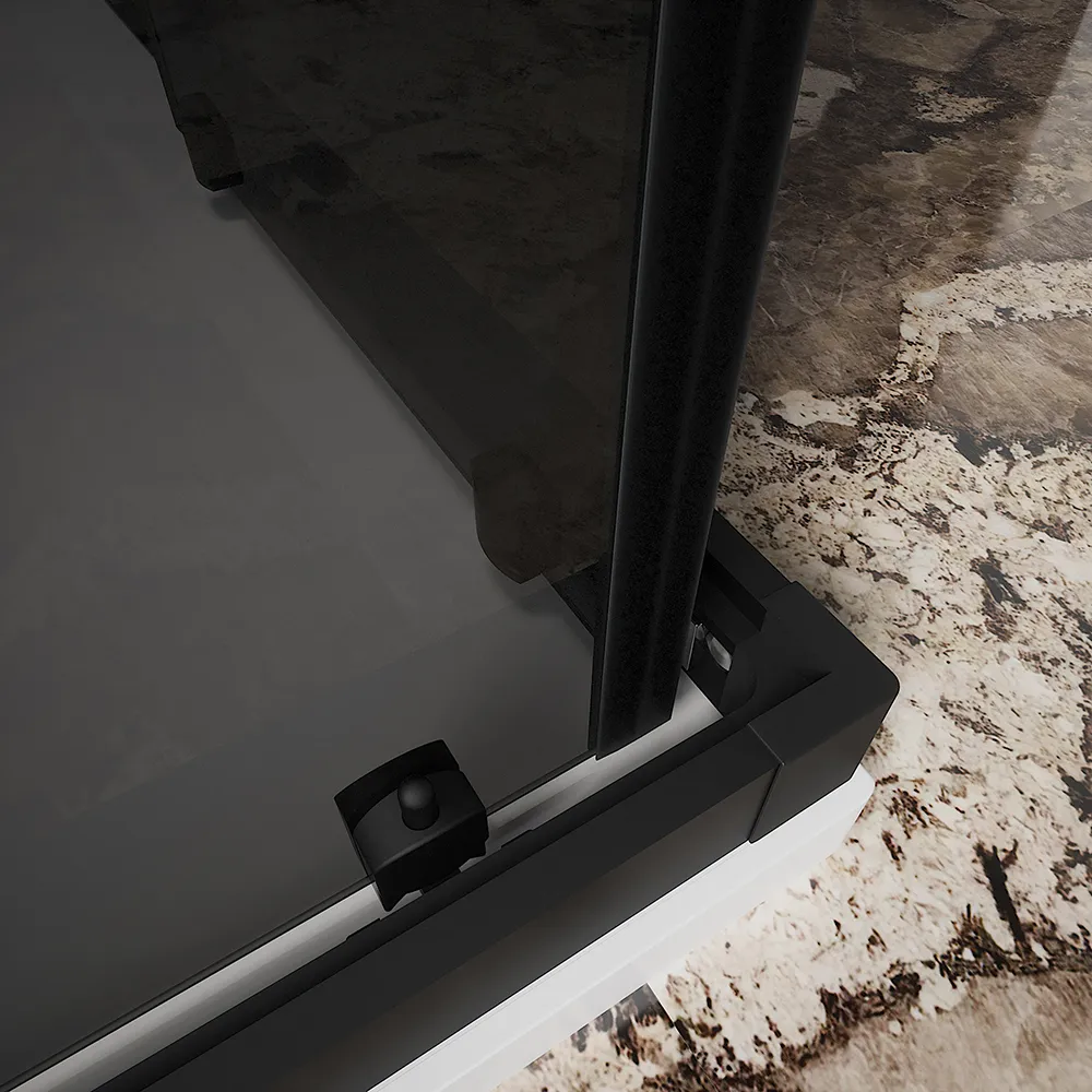 Eleganza e funzionalità si fondono in questo box doccia angolare perfetto per donare un tocco di raffinatezza al tuo bagno. Il vetro da 6 mm, robusto e sicuro, garantisce una lunga durata e una facile pulizia, mentre la finitura fumè regala un effetto ottico di grande impatto, creando un'atmosfera intima e avvolgente.