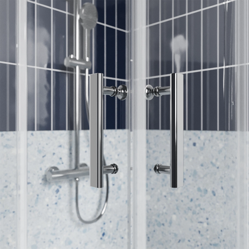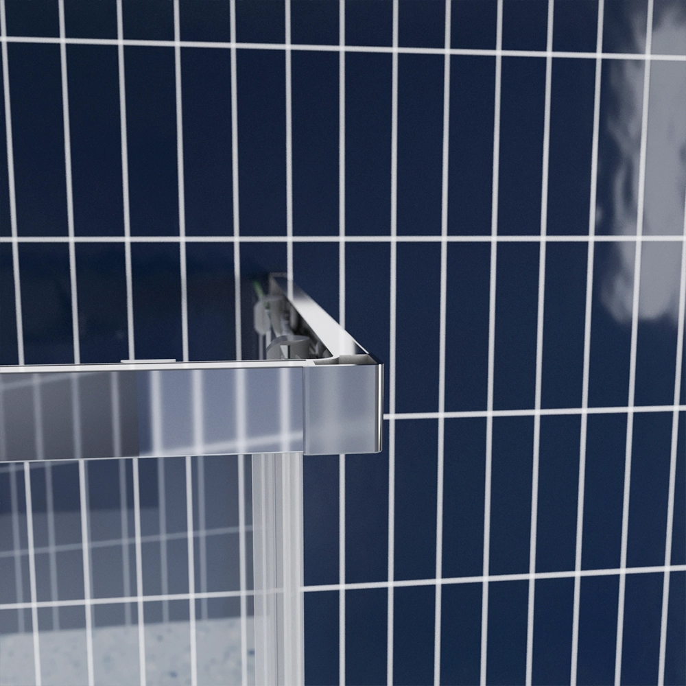 Questo box doccia angolare nella misura 70x100cm si caratterizza per linee decise ed eleganti adatte ad un bagno tradizionale ma anche moderno. La struttura è realizzata con profili in alluminio cromato e vetro temperato trasparente da 6mm certificato EN12150-1, il trattamento anticalcare applicato sul lato interno facilita la pulizia ed previene il deposito di fastidiosi residui calcarei.