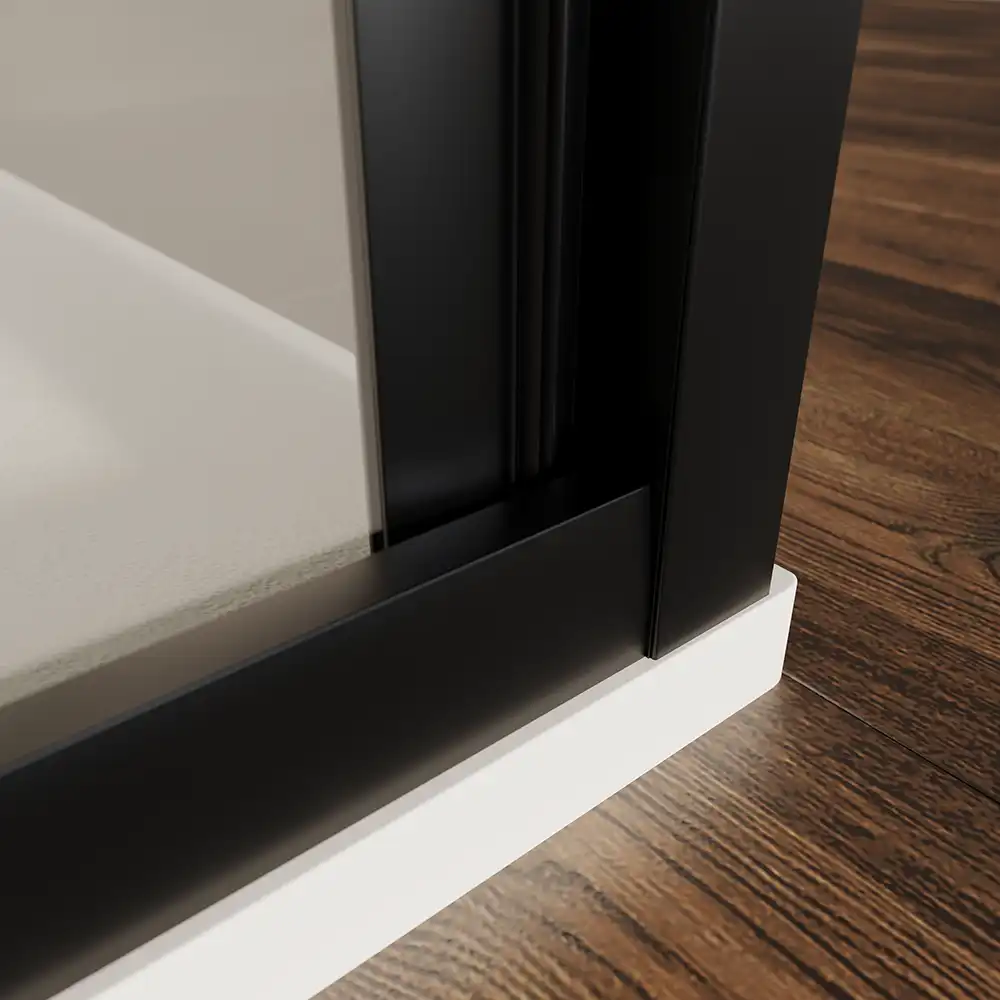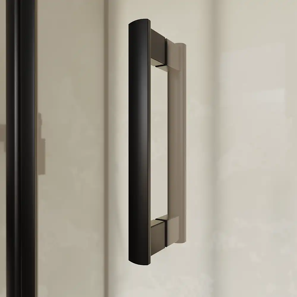 La maniglia dal design attuale è un dettaglio elegante e funzionale. Facile da afferrare, permette un'apertura ed una chiusura agevoli del box doccia. La sua finitura nero opaco di alta qualità aggiunge un tocco di raffinatezza e stile al prodotto.