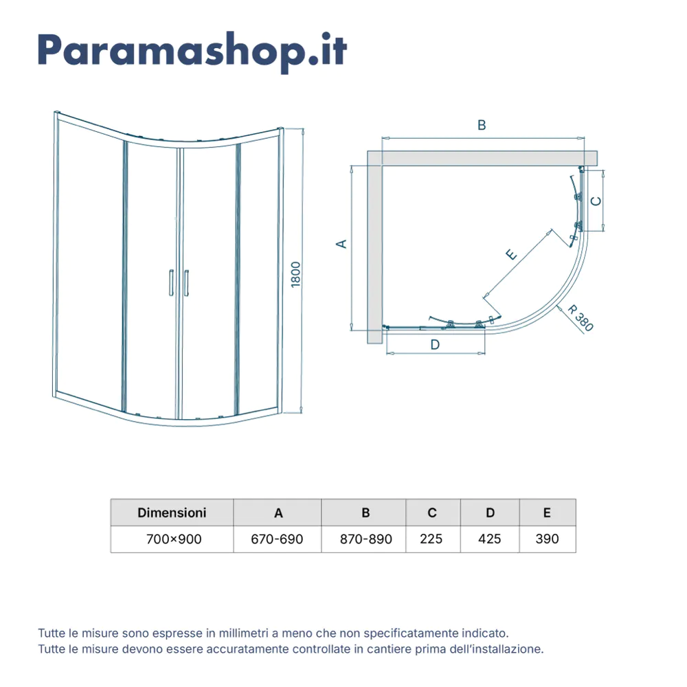 Box doccia 70x90cm semicircolare apertura scorrevole cristallo 6mm opaco h180 | Java