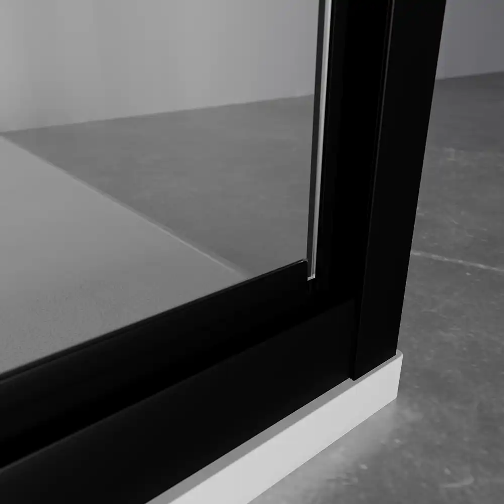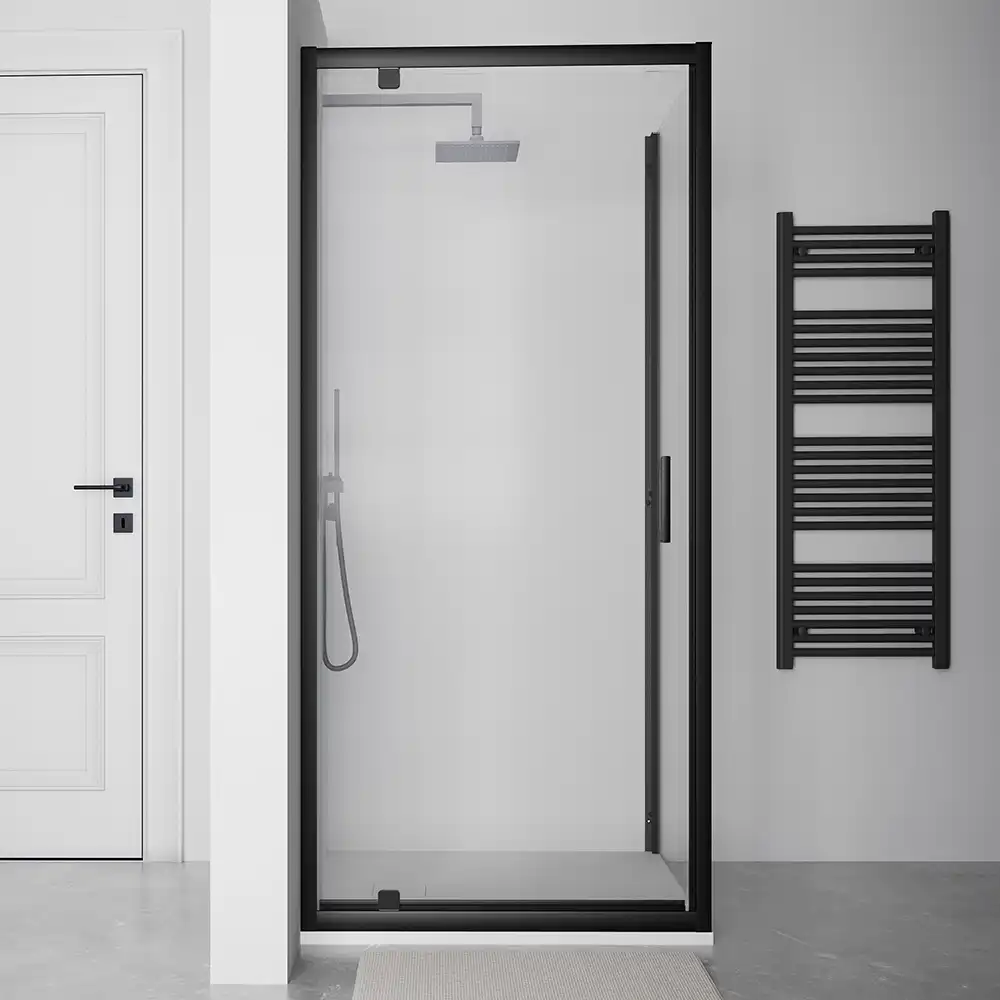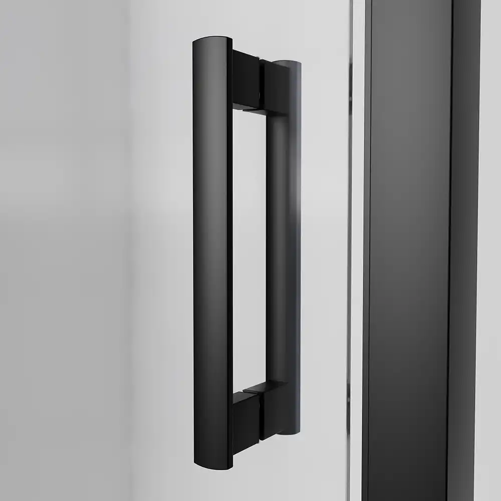 Il vetro temperato certificato EN12150-1, con uno spessore di 6 mm, rappresenta un elemento di design solido e sofisticato, trasmettendo una sensazione di robustezza, durabilità e modernità al tuo bagno. La sua trasparenza cristallina permette alla luce di fluire liberamente, creando un'atmosfera luminosa e spaziosa all'interno dello spazio doccia. La manigliamaniglia realizzata in metallo con finitura nero opaco è un dettaglio che cattura l'attenzione grazie alla sua eleganza e funzionalità. Questo elemento ben progettato non solo aggiunge un tocco di stile al box doccia, ma offre anche una presa comoda e sicura durante l'apertura e la chiusura dell'anta.