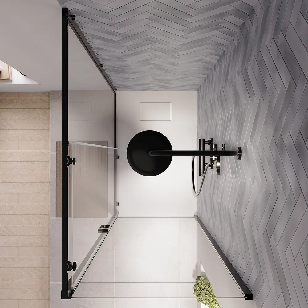 L'apertura scorrevole è una pratica soluzione per ambienti bagno dove lo spazio è ristretto. La fluidità dello scorrimento è garantita da 8 carrelli scorrevoli testati per oltre 100.000 aperture. L'anta scorrevole ha un comodo meccanismo di sgancio rapido utile a semplificare le operazioni di pulizia. Particolare attenzione è stata data anche alle finiture, infatti le cover in ABS dei carrelli sono in colore cromato, in perfetta combinazione con la finitura dei profili in alluminio.