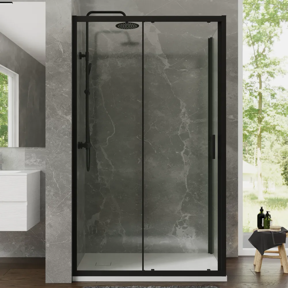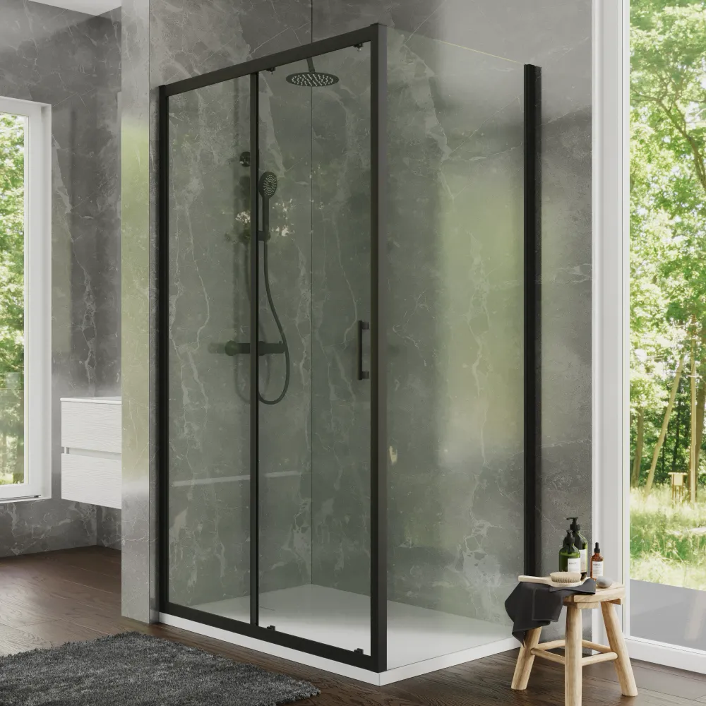 Box doccia 80x120 cm scorrevole profili nero opaco vetro temperato 6mm trasparente anticalcare h198 | Tahiti