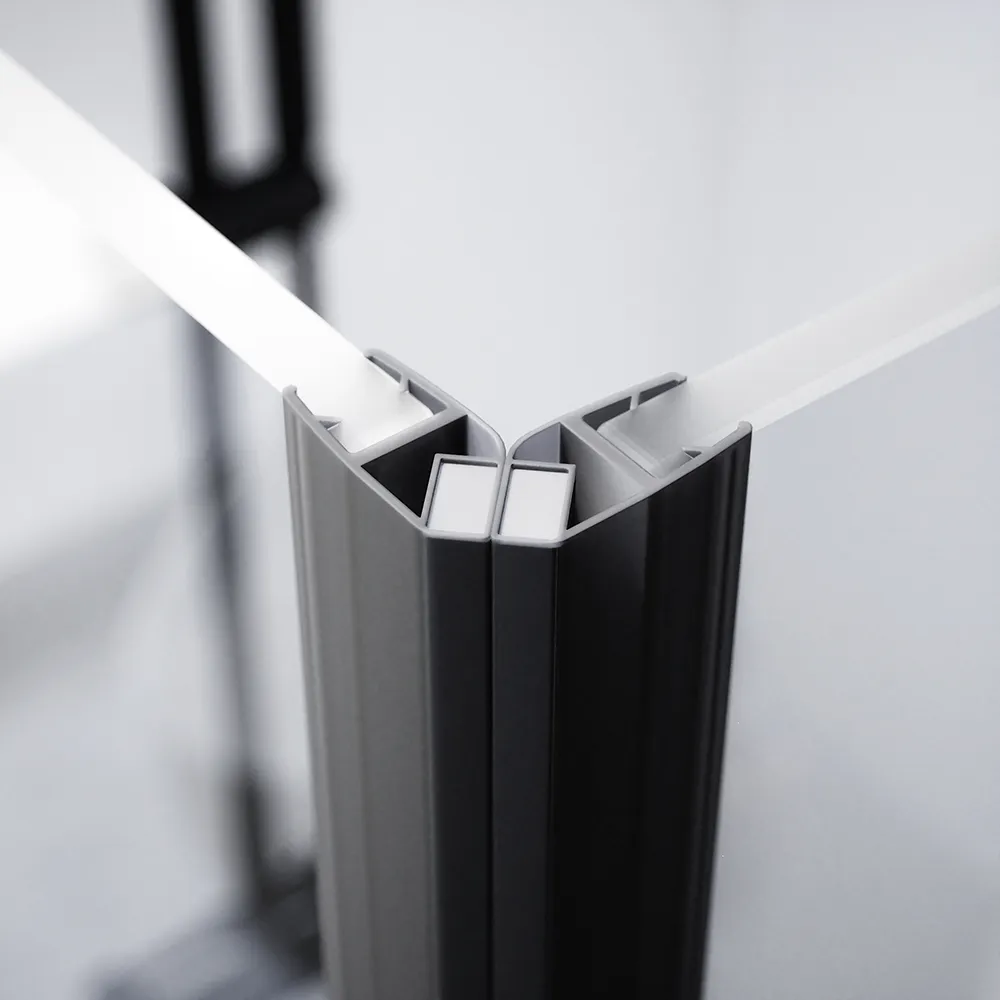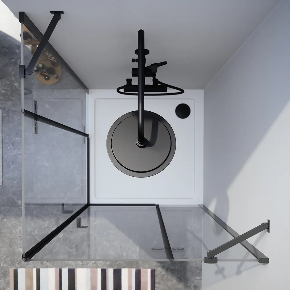Ogni dettaglio di questa porta doccia è pensato per aggiungere un tocco di eleganza al tuo bagno. I profili in alluminio con una finitura nero opaco conferiscono un aspetto moderno e minimalista, mentre le cerniere in ottone creano un contrasto affascinante e di classe.