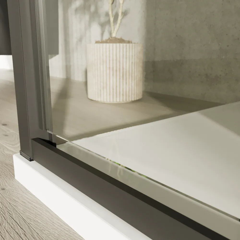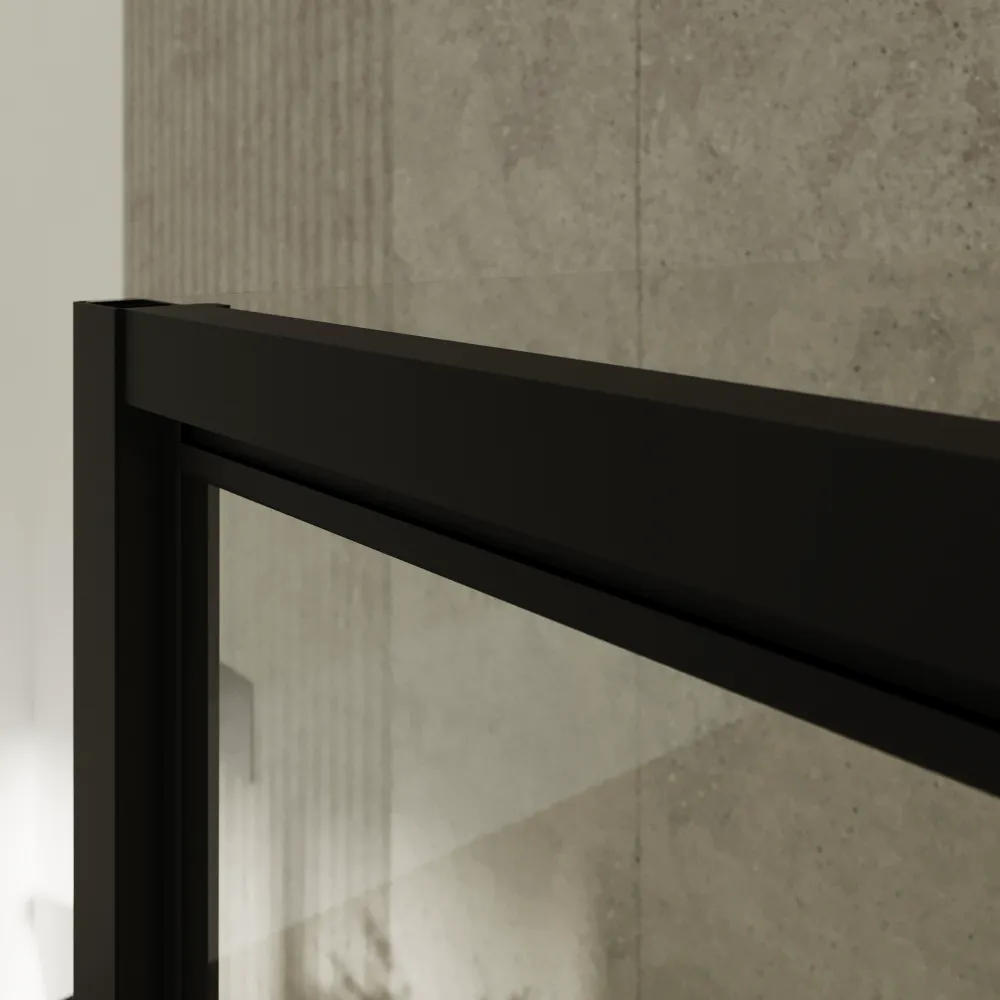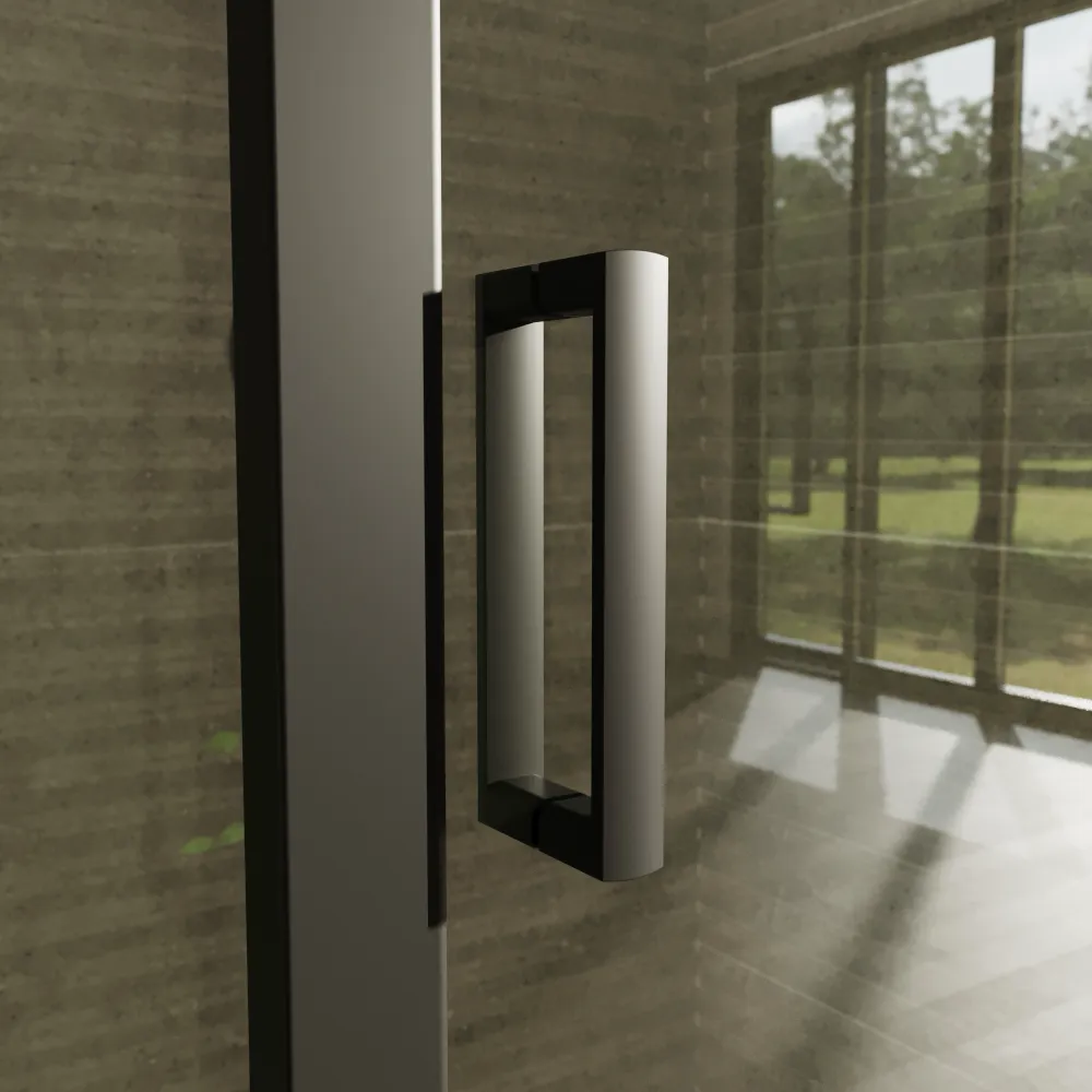 Realizzato con vetro temperato trasparente da 6 mm, conforme alla norma EN12150-1, garantisce sicurezza e resistenza. I profili in alluminio nero opaco sono duraturi, facili da pulire e resistenti a calcare e macchie.