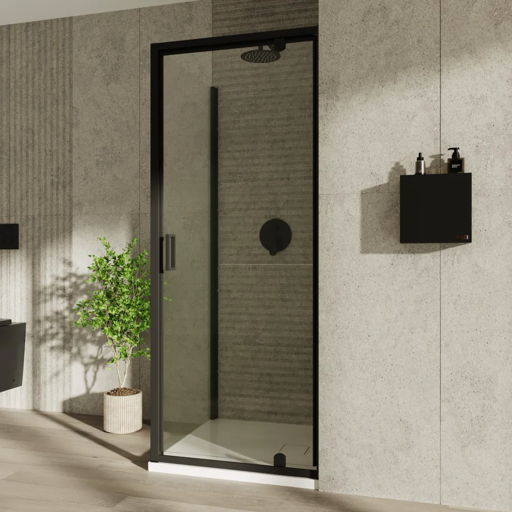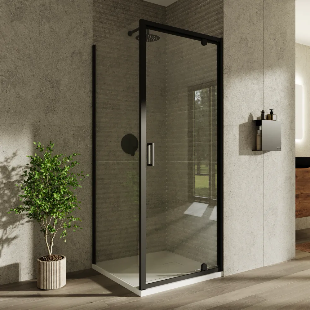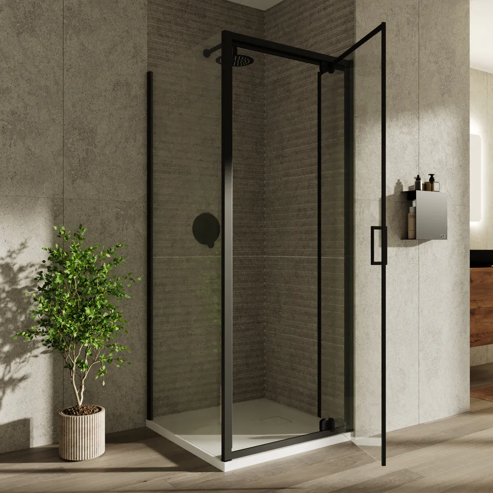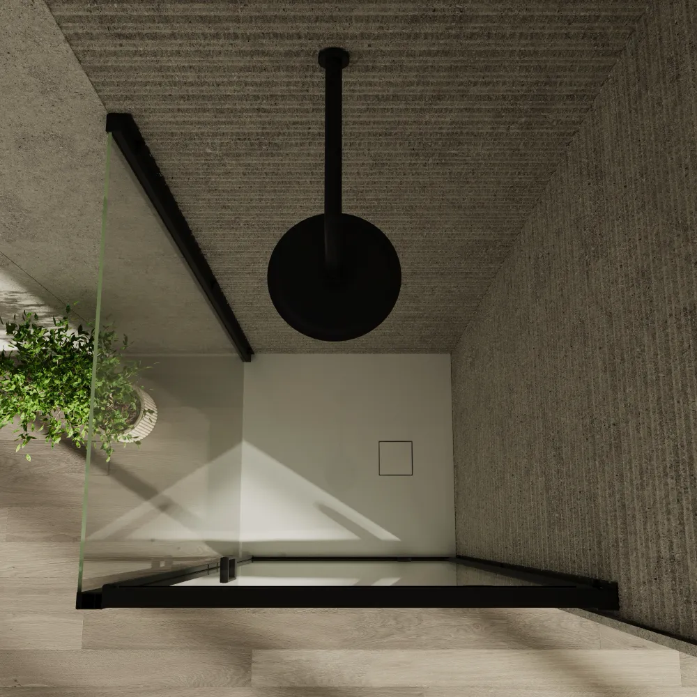 Realizzato con vetro temperato trasparente da 6 mm, conforme alla norma EN12150-1, garantisce sicurezza e resistenza. I profili in alluminio nero opaco sono duraturi, facili da pulire e resistenti a calcare e macchie.
