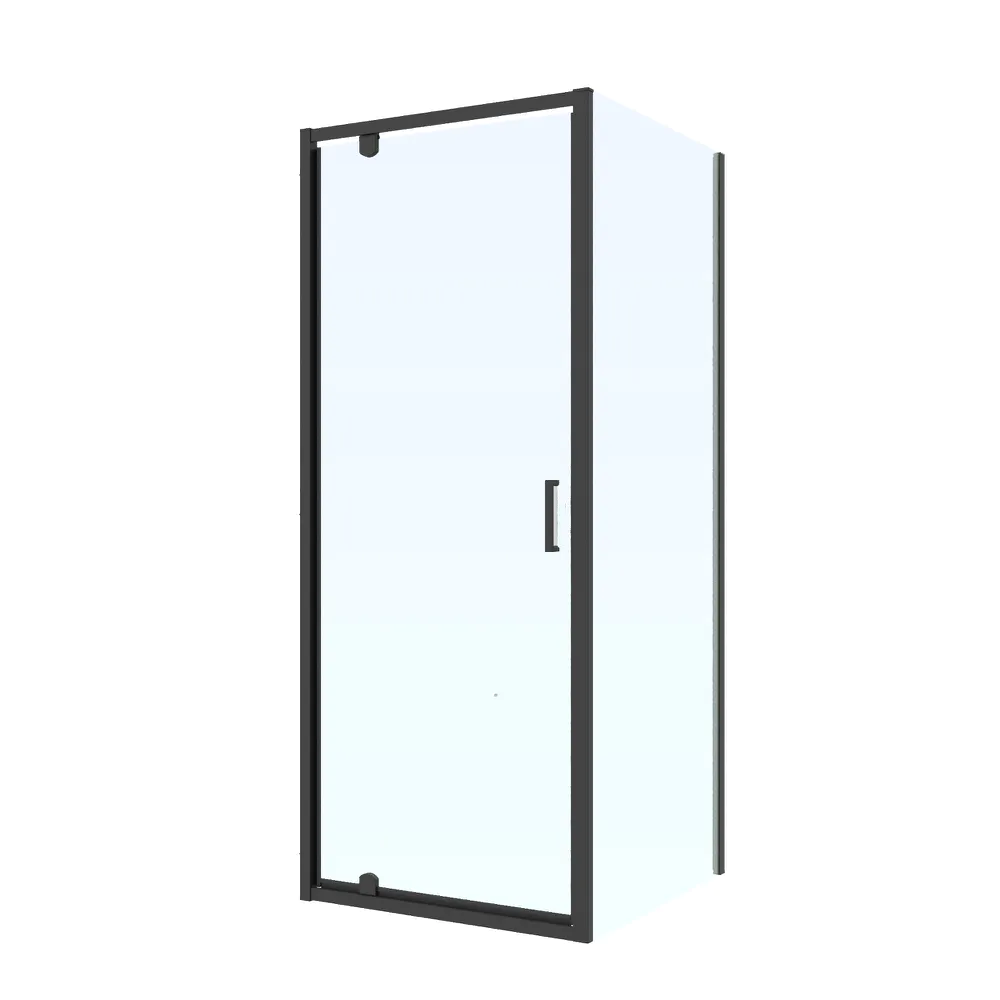 Box doccia 80x70 cm con apertura a battente e parete fissa vetro 6mm trasparente profili nero opaco h185 | Tonga