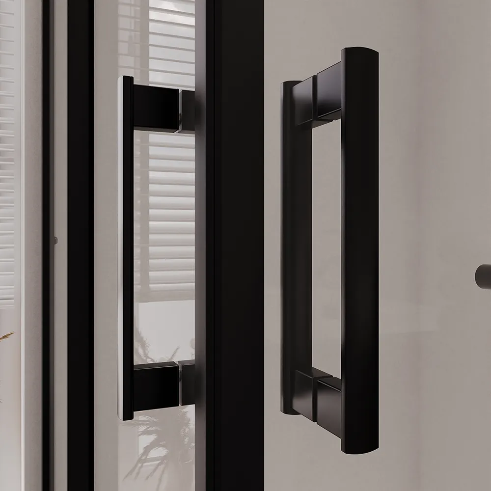 Rilassati all'interno del tuo nuovo box doccia Java! Questo design con misura 80x80cm si installa ad angolo permettendo di sfruttare al meglio tutto lo spazio disponibile all'interno del tuo bagno. I profili in alluminio nero opaco hanno un design minimal ed elegante, tutto ciò che ti potresti aspettare da un box doccia ideato per portare un'aria nuova e moderna all'interno del tuo bagno!