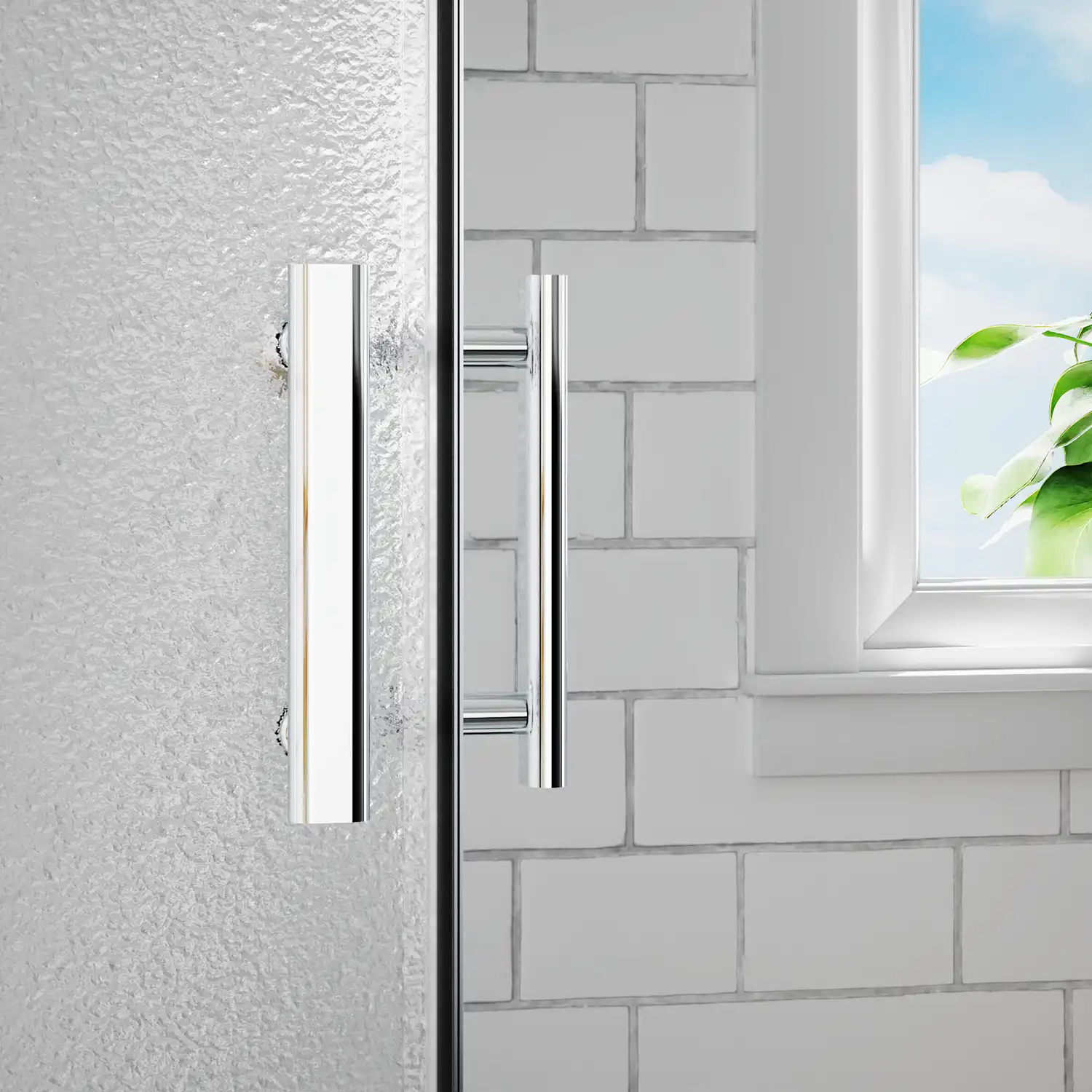 L'installazione è reversibile dunque può essere effettuata sia con orientamento a destra sia con orientamento a sinistra senza alcun problema. E' prevista una tolleranza di -2cm per pareti fuori squadro. Le due maniglie in dotazione sono infine realizzate interamente in acciaio inox SUS304.