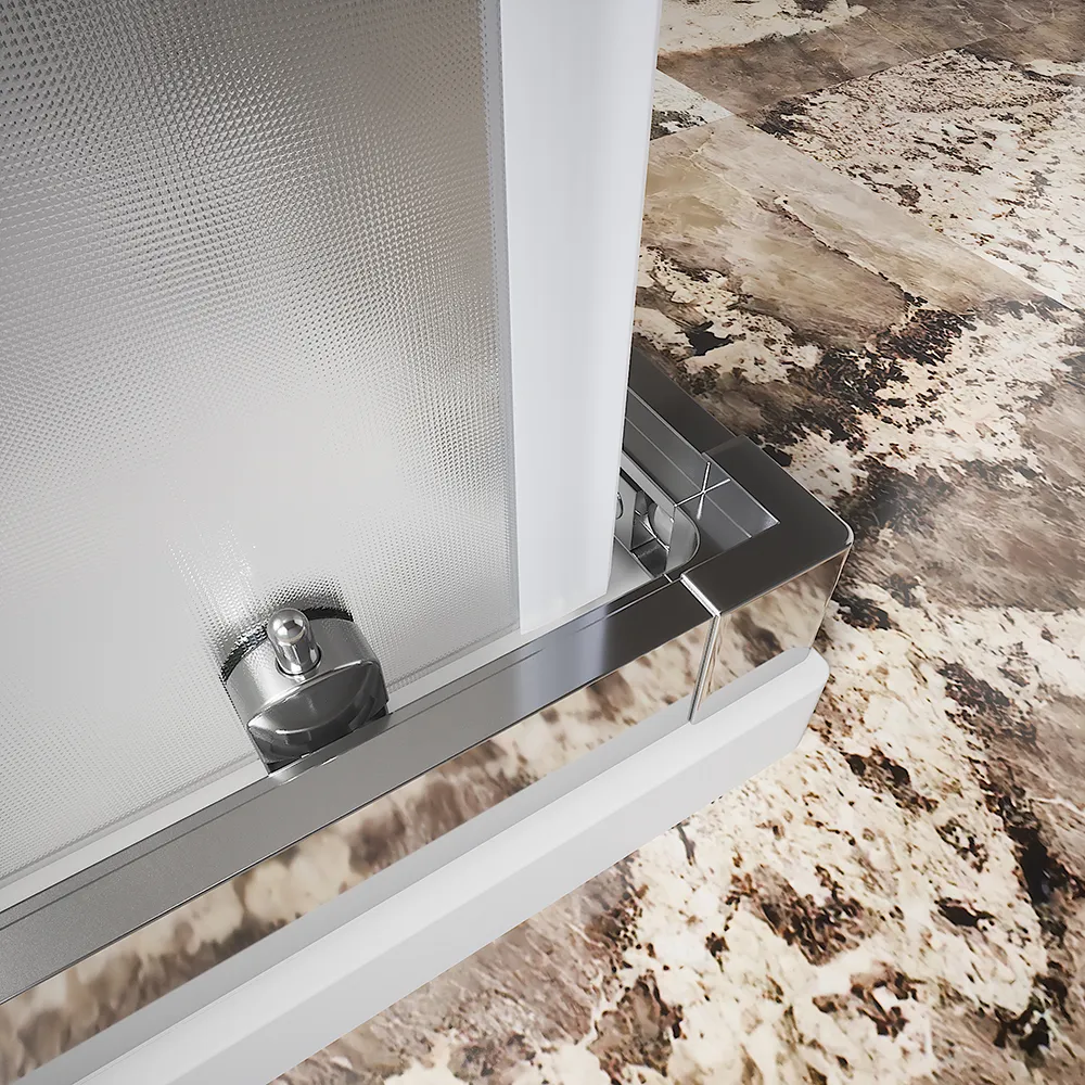 Eleganza e funzionalità si fondono in questo box doccia angolare perfetto per donare un tocco di raffinatezza al tuo bagno. Il vetro da 6 mm, robusto e sicuro, garantisce una lunga durata e una facile pulizia, mentre la finitura stampata regala un effetto ottico di grande impatto, creando un'atmosfera intima e avvolgente.