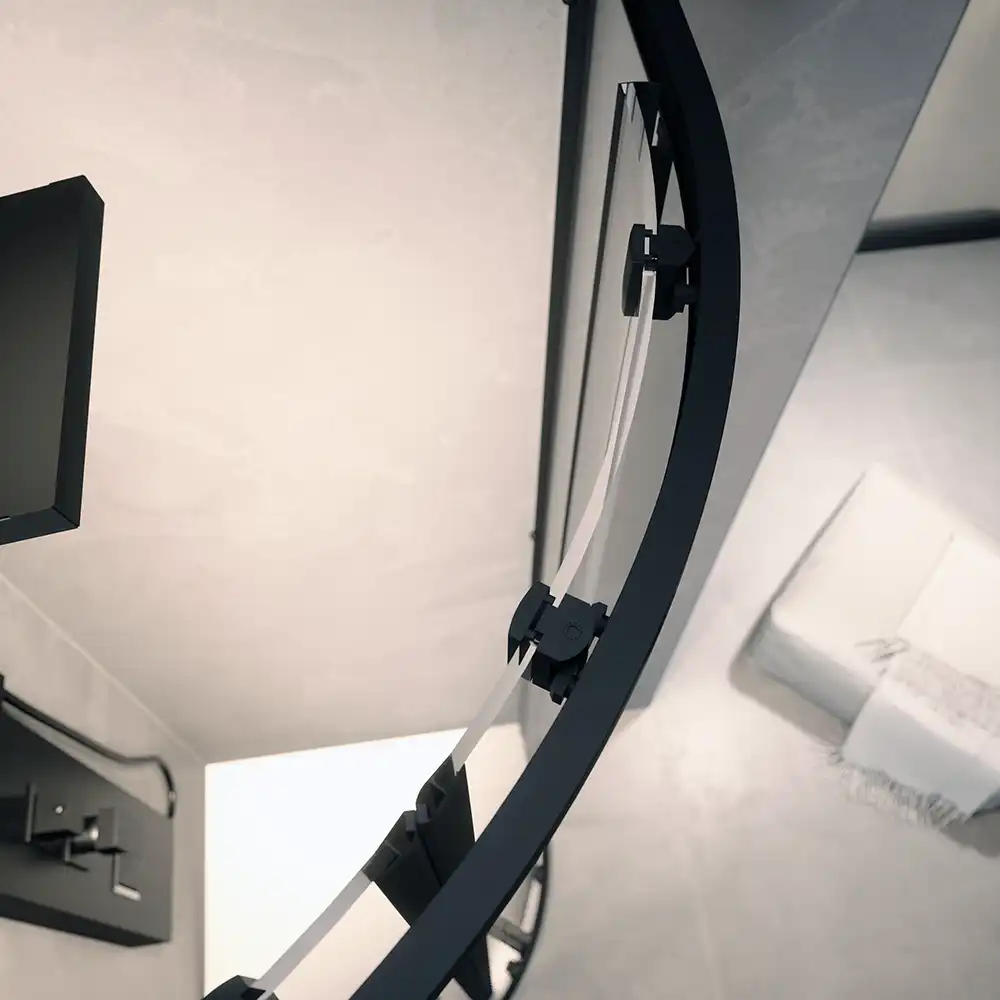 Box doccia angolare 80x80 cm semicircolare alluminio nero apertura scorrevole e cristallo temperato 6mm trasparente h190 mod. Java