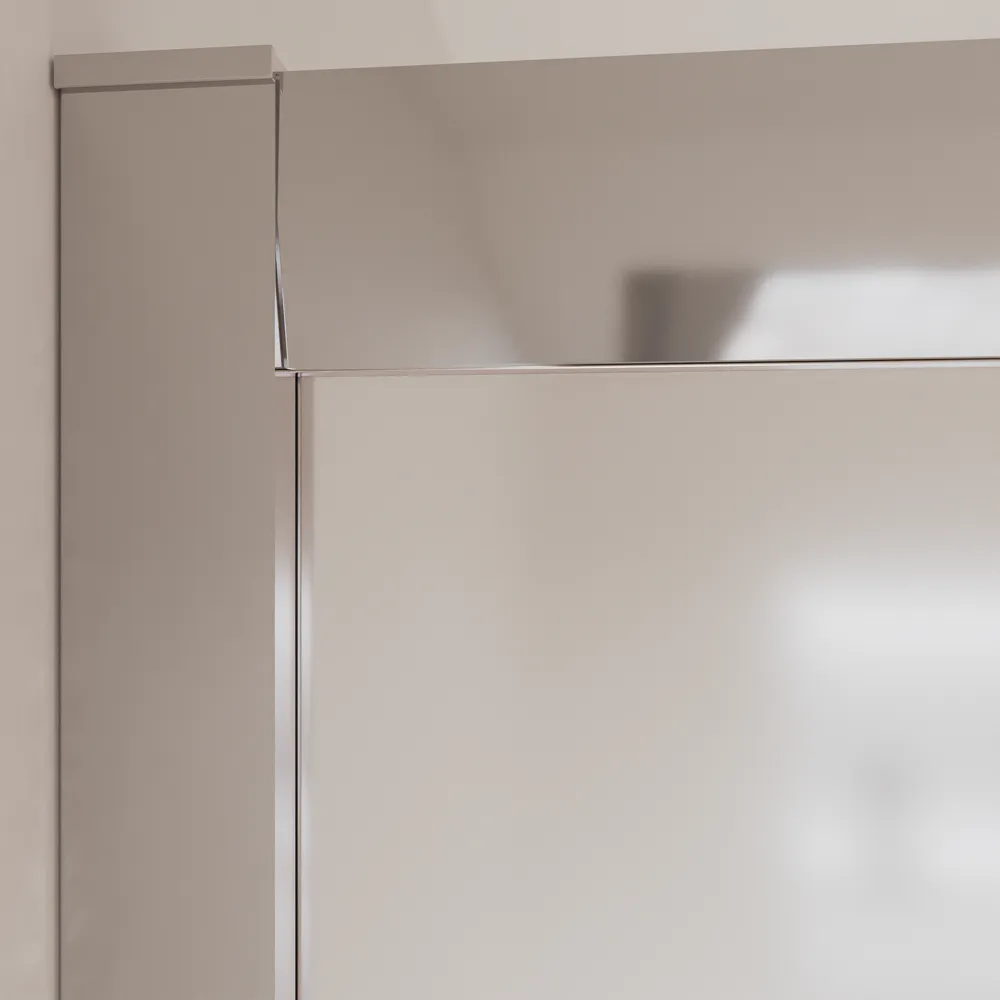 Il vetro temperato opaco da 6 mm esalta la luminosità dell’ambiente bagno, mentre i profili in alluminio cromato conferiscono solidità e un’estetica raffinata, adattandosi con naturalezza a diverse tipologie di arredo.