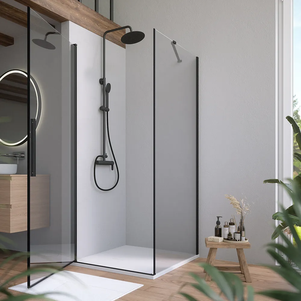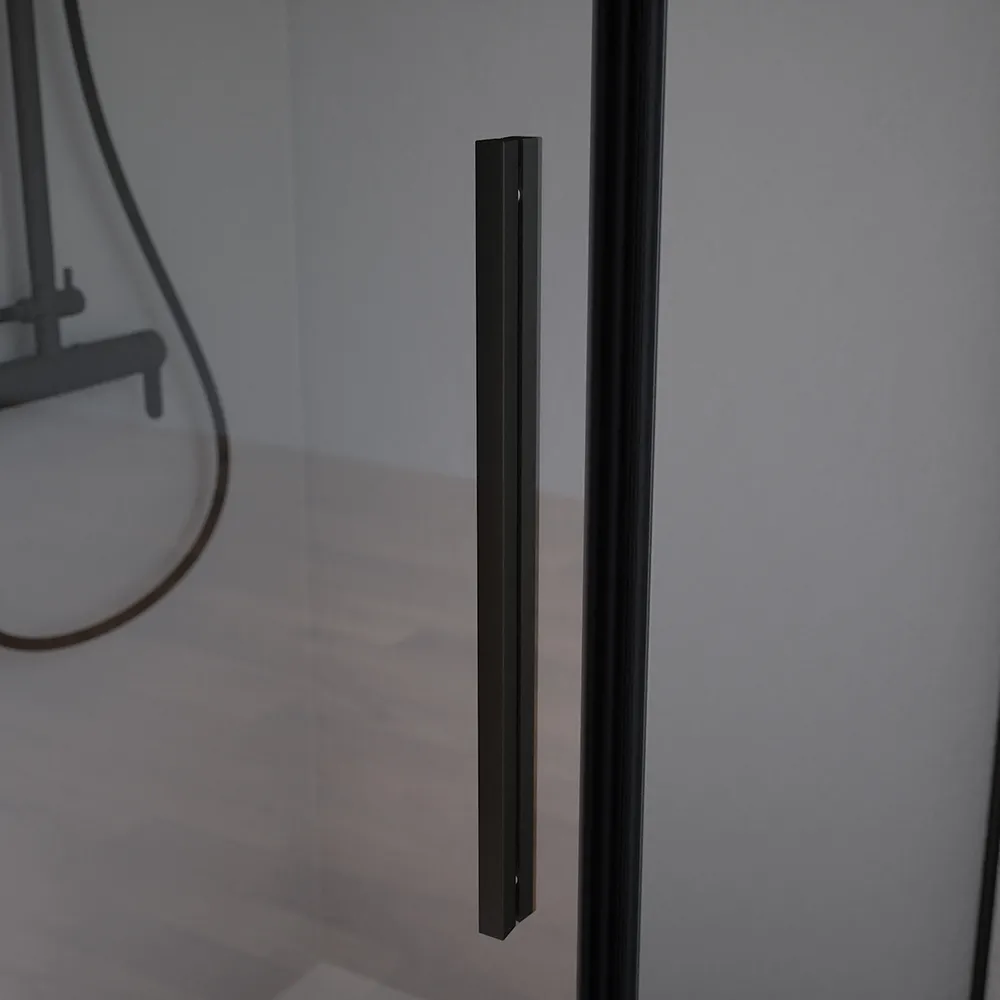 I profili in alluminio nero opaco donano al box un aspetto moderno e raffinato, con una finitura opaca che valorizza il design contemporaneo dell’ambiente bagno.