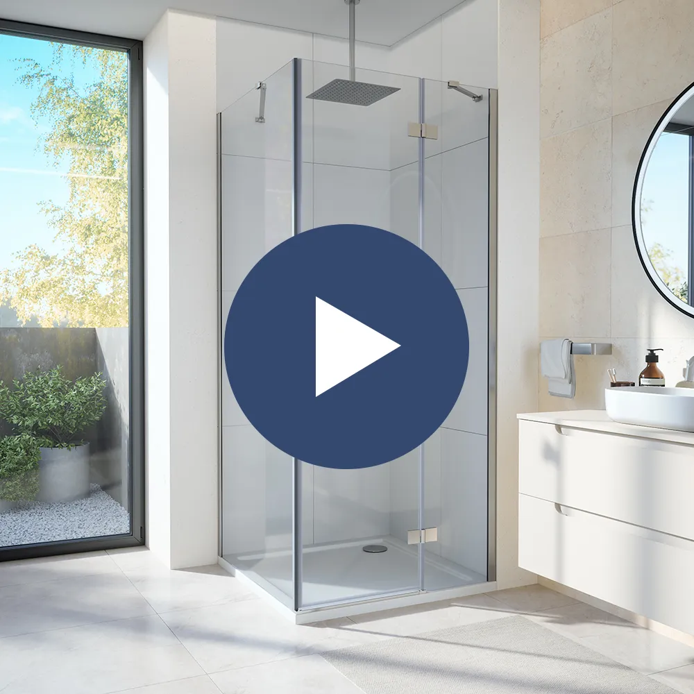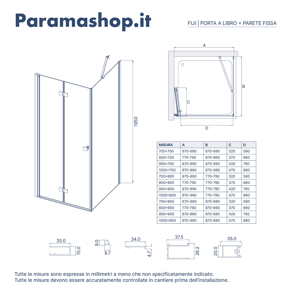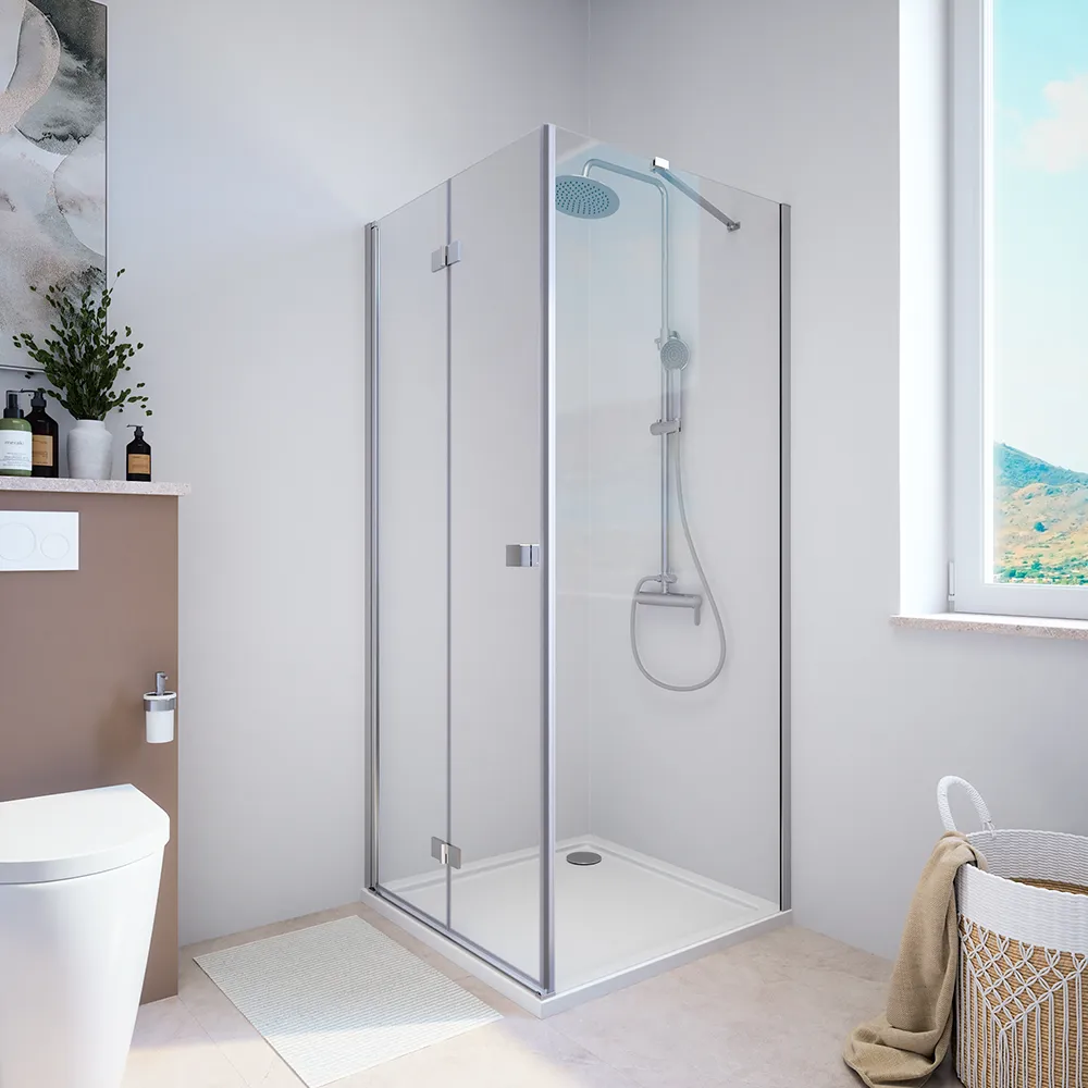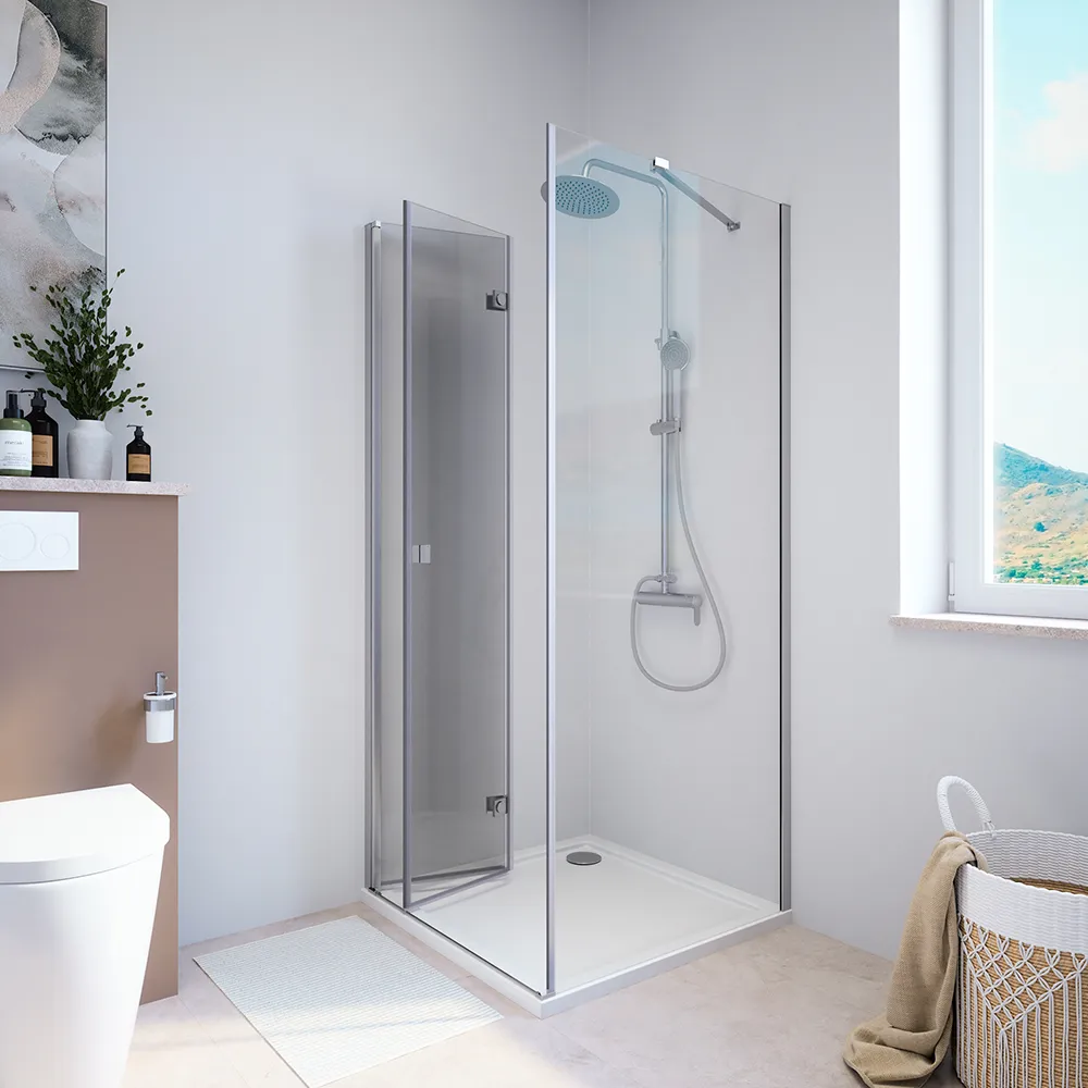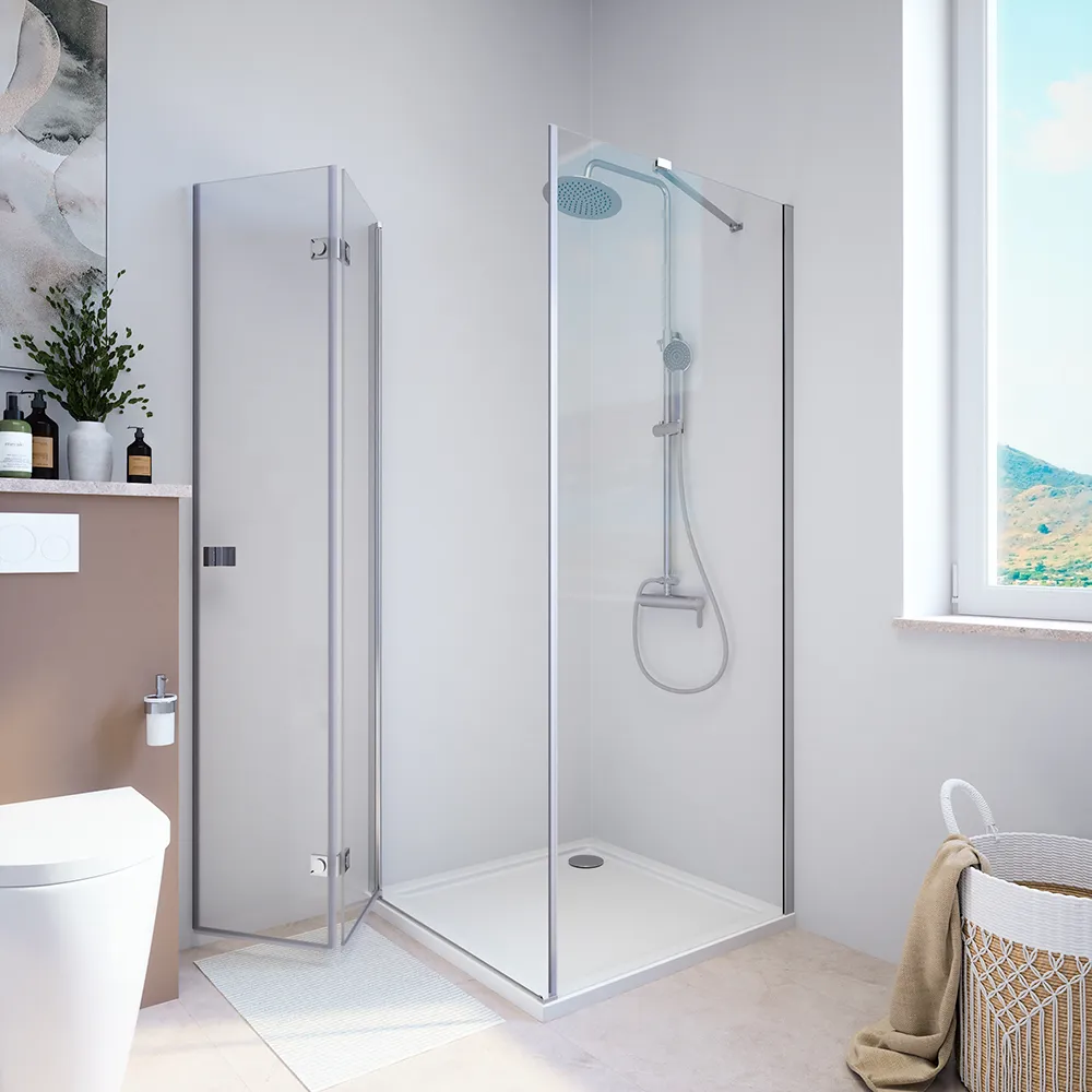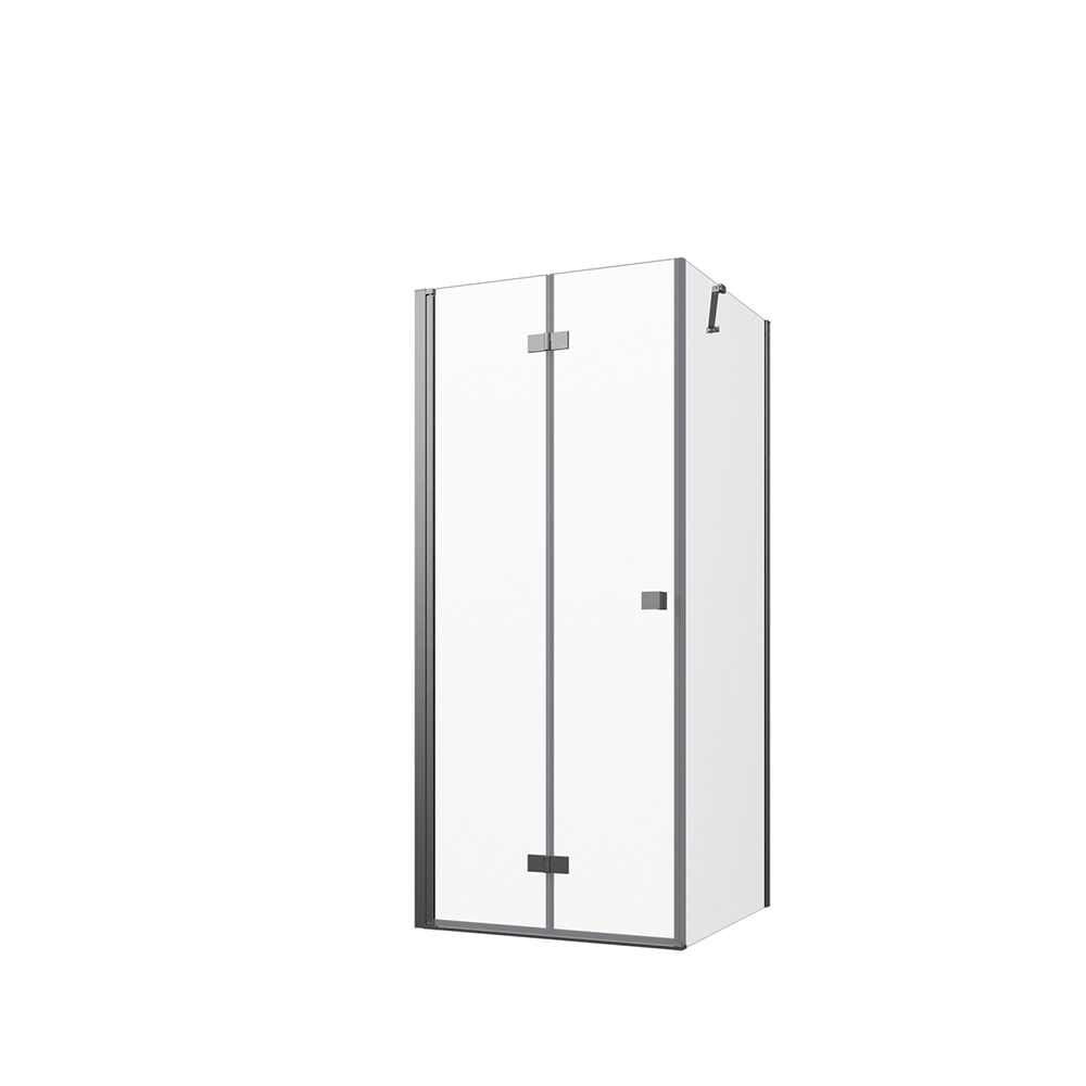 Box doccia 90x80 cm con apertura a libro lato sinistro e parete fissa, profili cromati e vetro 8mm trasparente h195 | Fiji