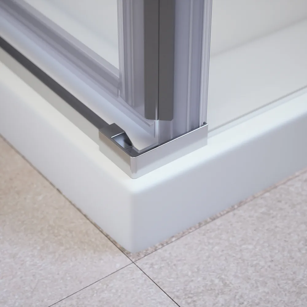 Il vetro trasparente è uno degli elementi distintivi di questo box doccia. Con uno spessore di 8mm garantisce solidità e robustezza ed in più, grazie al trattamento anticalcare, il vetro resiste efficacemente alle macchie di calcare e ai residui di sapone, semplificando le operazioni di pulizia e mantenendo la cabina doccia sempre in perfette condizioni.
