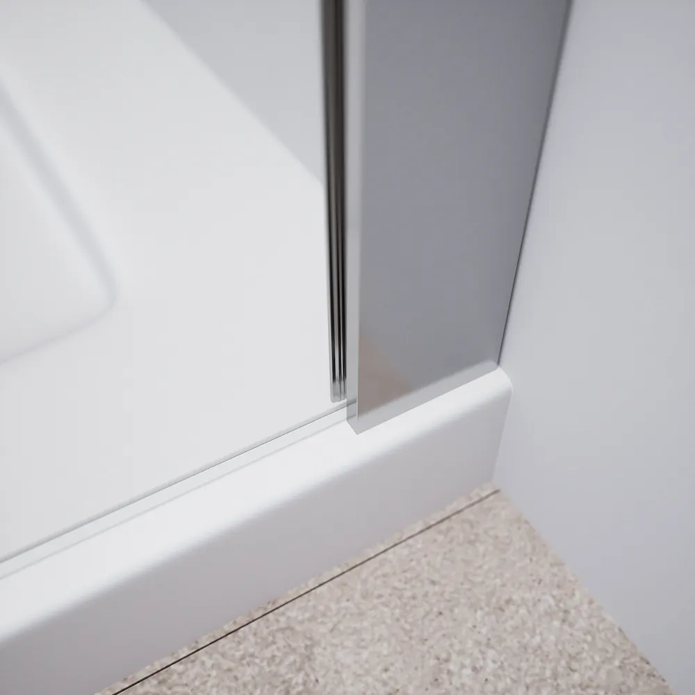 Ogni dettaglio di questa porta doccia è pensato per aggiungere un tocco di eleganza al tuo bagno. I profili in alluminio cromato conferiscono un aspetto moderno e minimalista, mentre le cerniere in ottone creano un contrasto affascinante e di classe.