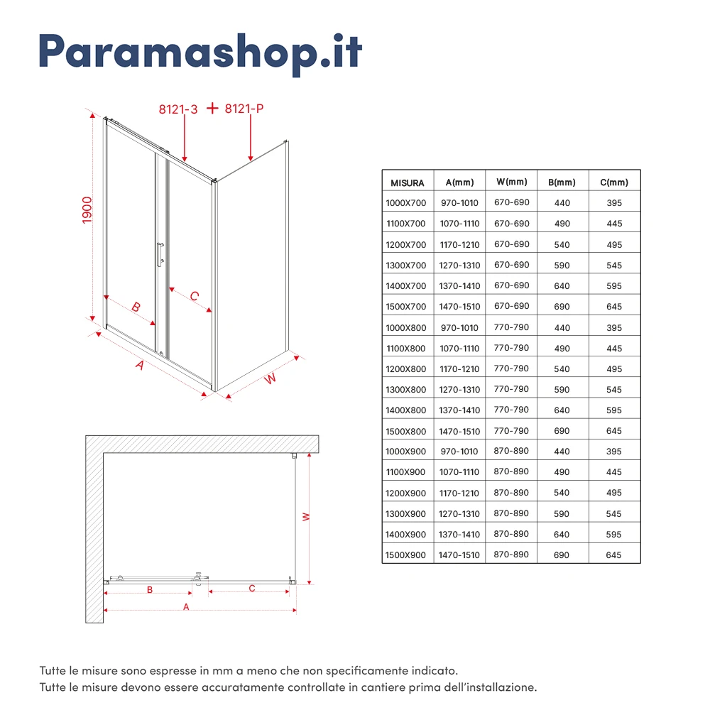 L'installazione è reversibile pertanto è possibile effettuarla con orientamento sia a destra che a sinistra. E' prevista inoltre una tolleranza di -2cm per lato per pareti con fuori squadro. Le due maniglie in dotazione sono realizzate interamente in acciaio inox SUS304.