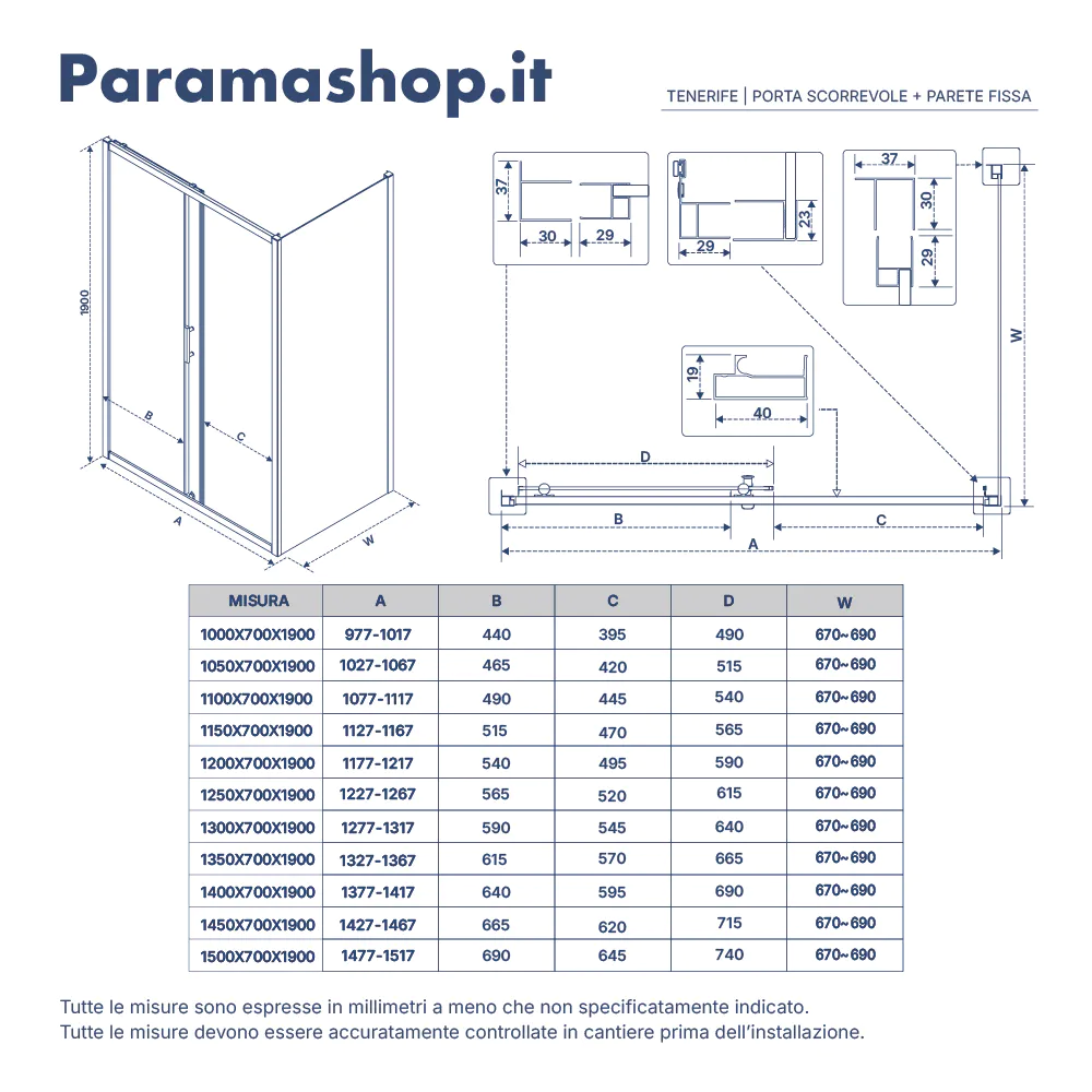 | Parete fissa: | 70cm |