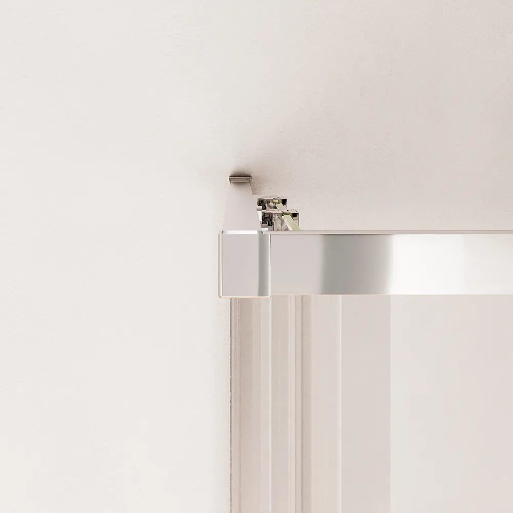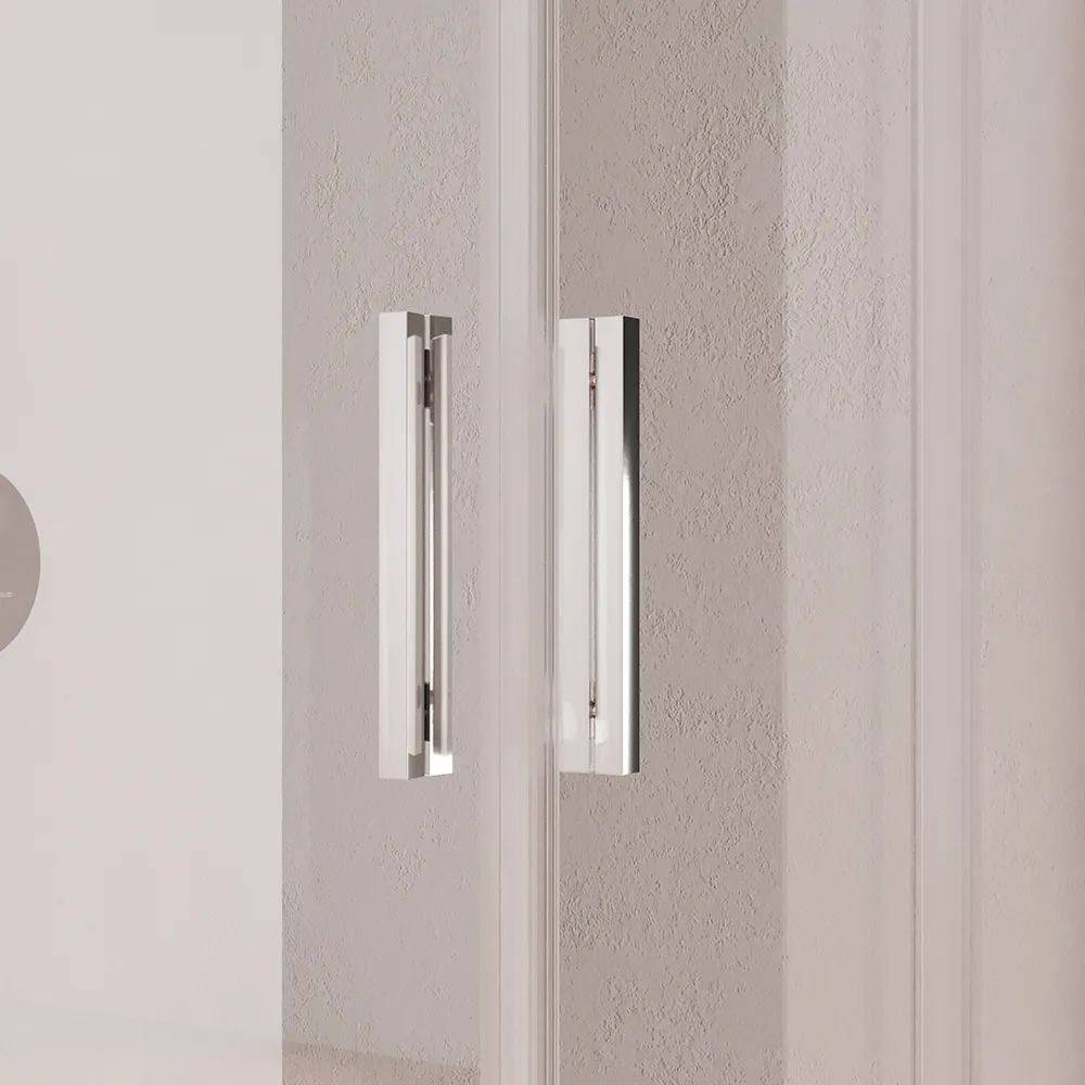 Il vetro temperato trasparente da 6 mm offre una visuale cristallina e amplifica la luminosità del tuo bagno. La maniglia in alluminio anch'essa rivestita da una finitura cromata e dal design essenziale completa l'estetica minimalista del prodotto e garantisce una presa sicura e confortevole.