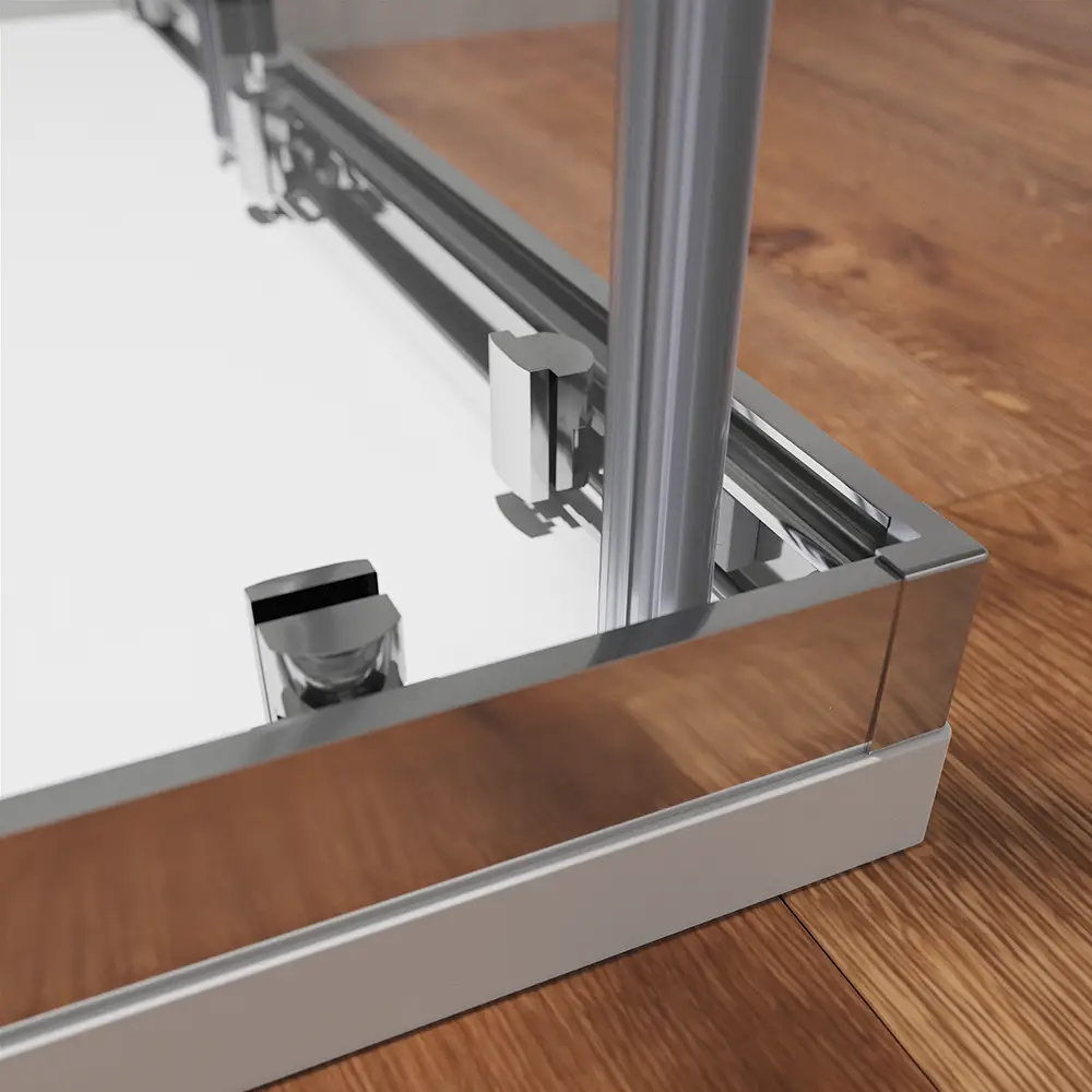 Le ante fisse e scorrevoli sono dotate di guarnizioni verticali salvagoccia al fine di garantire eccellenti performance nell'isolamento dalle fuoriuscite d'acqua. Il meccanismo di sgancio rapido facilita la pulizia della cabina doccia, mentre la chiusura magnetica assicura un'adeguata tenuta.