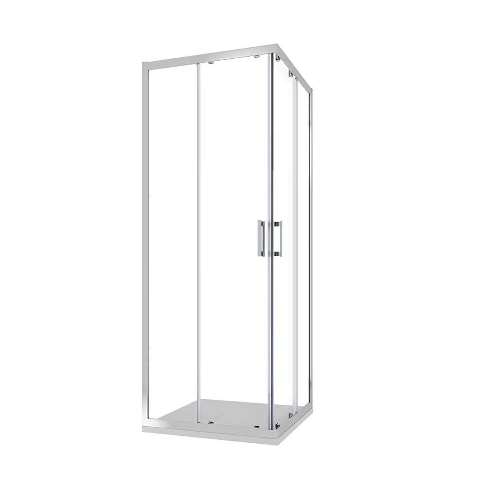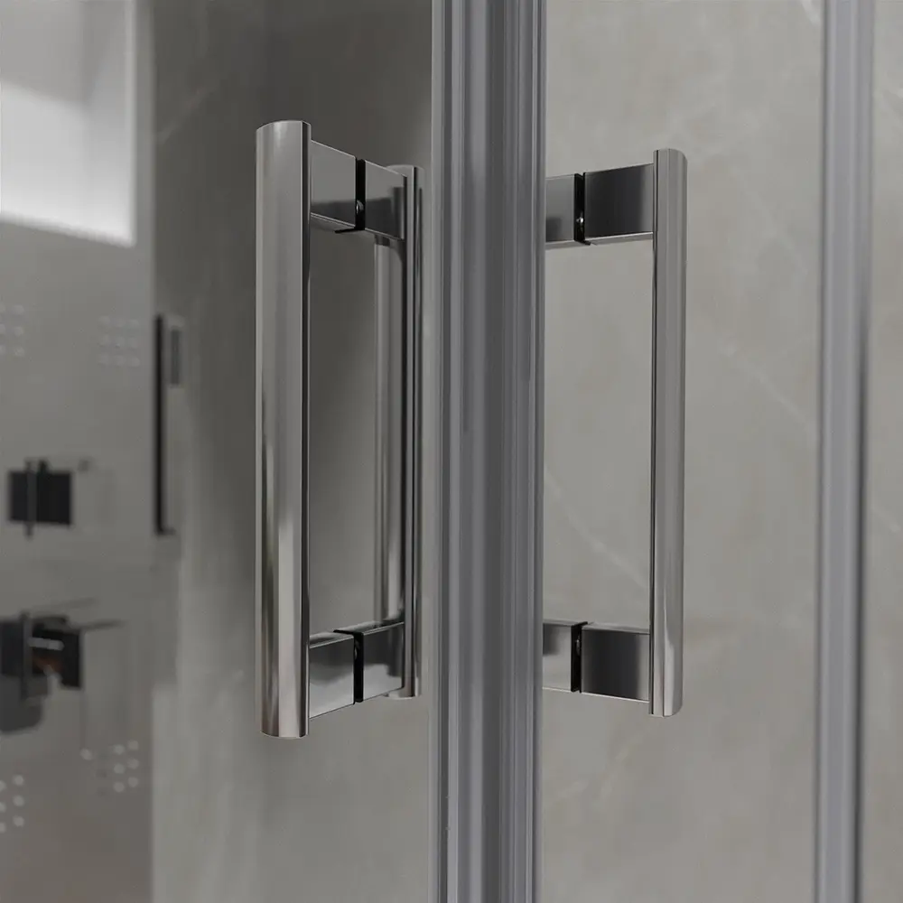 Con un' apertura ad angolo e doppie ante scorrevoli, l'installazione può essere eseguita sia a filo pavimento che su piatti doccia tradizionali con bordo rialzato. La completa reversibilità e la tolleranza di 2 cm per lato (67-69cm x 117-119cm) semplificano il montaggio, evitando potenziali problemi causati da piccoli fuori squadro.