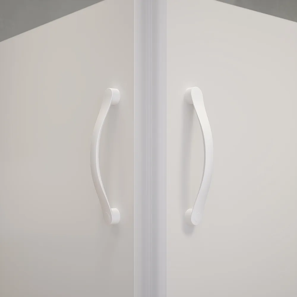 Anche la maniglia bianca riprende questo stile, con la sua forma squadrata e il colore neutro che si sposano perfettamente con le linee del box. Il colore bianco, infatti, si integra perfettamente con il design del box, creando un'armonia visiva che non lascia spazio a imperfezioni.