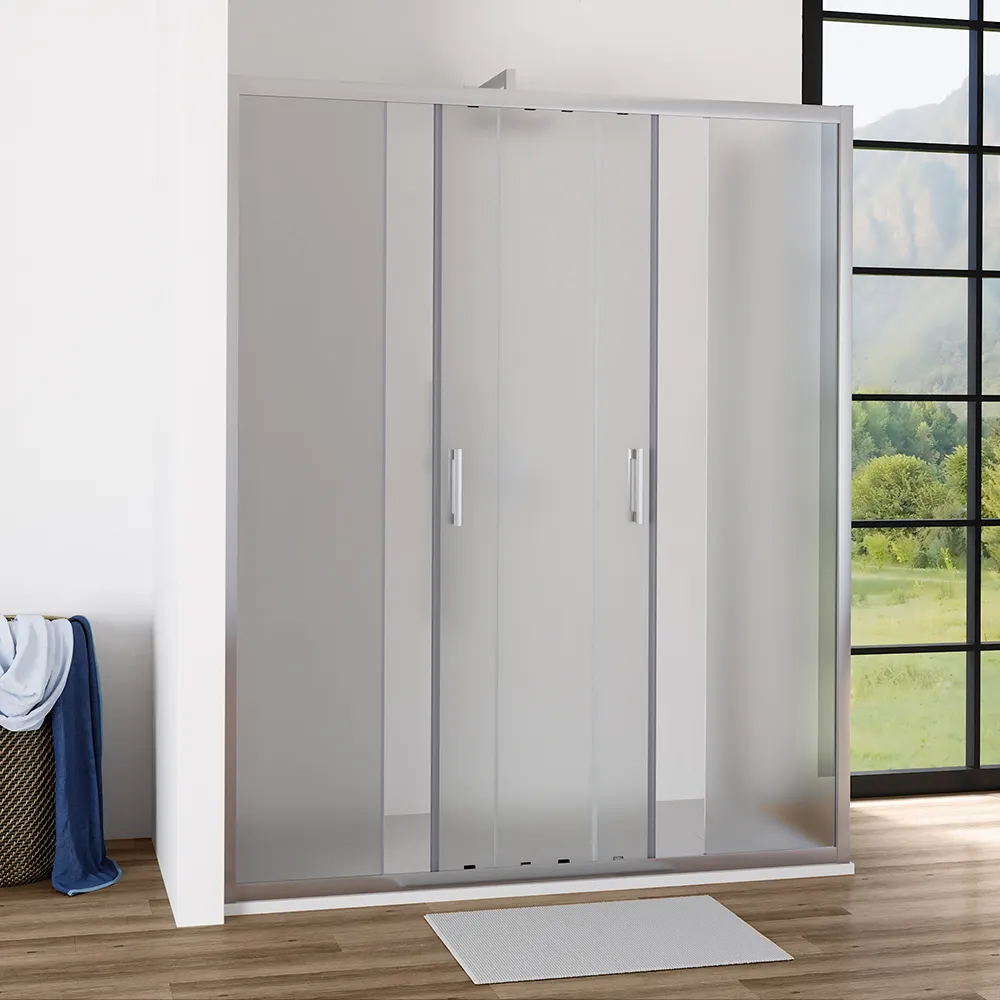 L'apertura scorrevole è una pratica soluzione per ambienti bagno dove la conformazione della stanza e la disposizione degli arredi non consentono altre tipologie di aperture. La fluidità dello scorrimento è garantita da 16 carrelli scorrevoli testati per oltre 100.000 aperture. Le ante scorrevoli sono dotate un comodo meccanismo di sgancio rapido utile a semplificare le operazioni di pulizia. Particolare attenzione è stata poi data alle finiture, infatti le cover in ABS dei carrelli sono in colore cromato, in perfetto abbinamento ai profili in alluminio.Installazione reversibile e tolleranza
