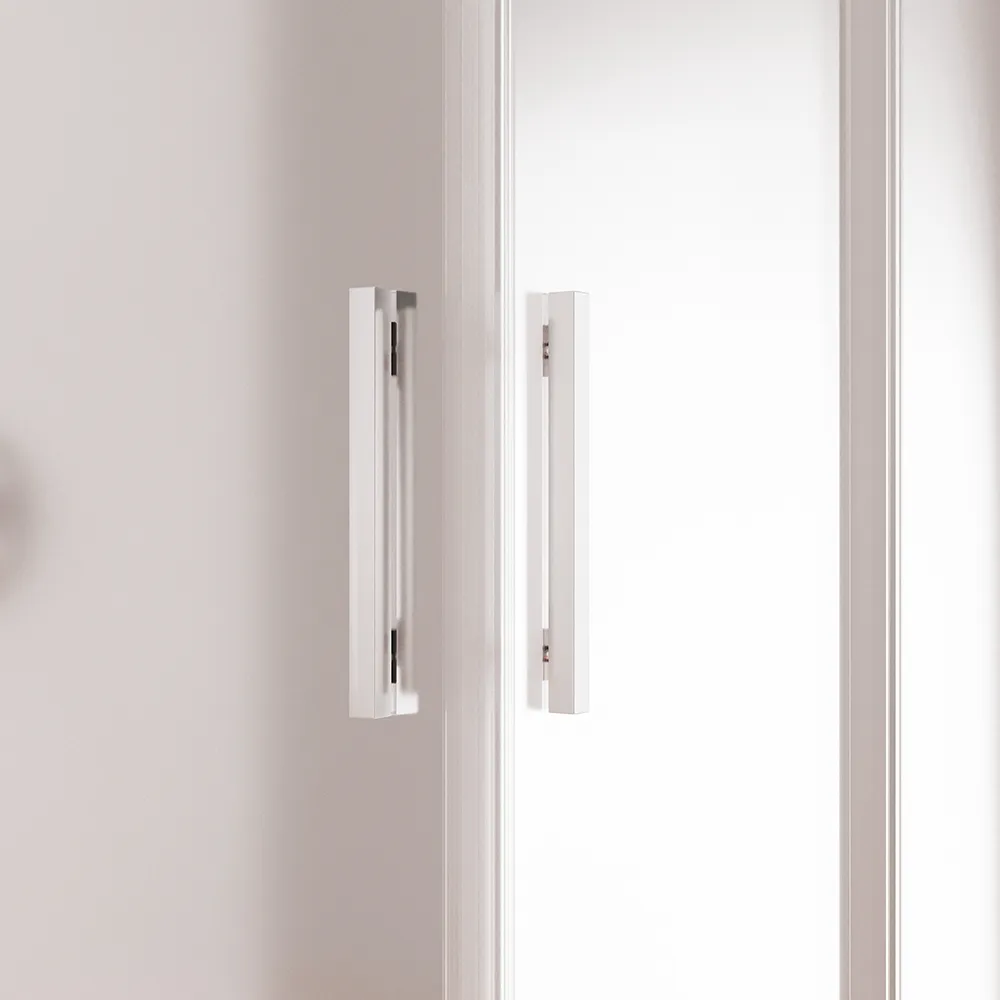 Il vetro temperato opaco da 6 mm crea un'atmosfera più accogliente. La maniglia in alluminio anch'essa rivestita da una finitura cromata e dal design essenziale completa l'estetica minimalista del prodotto e garantisce una presa sicura e confortevole.