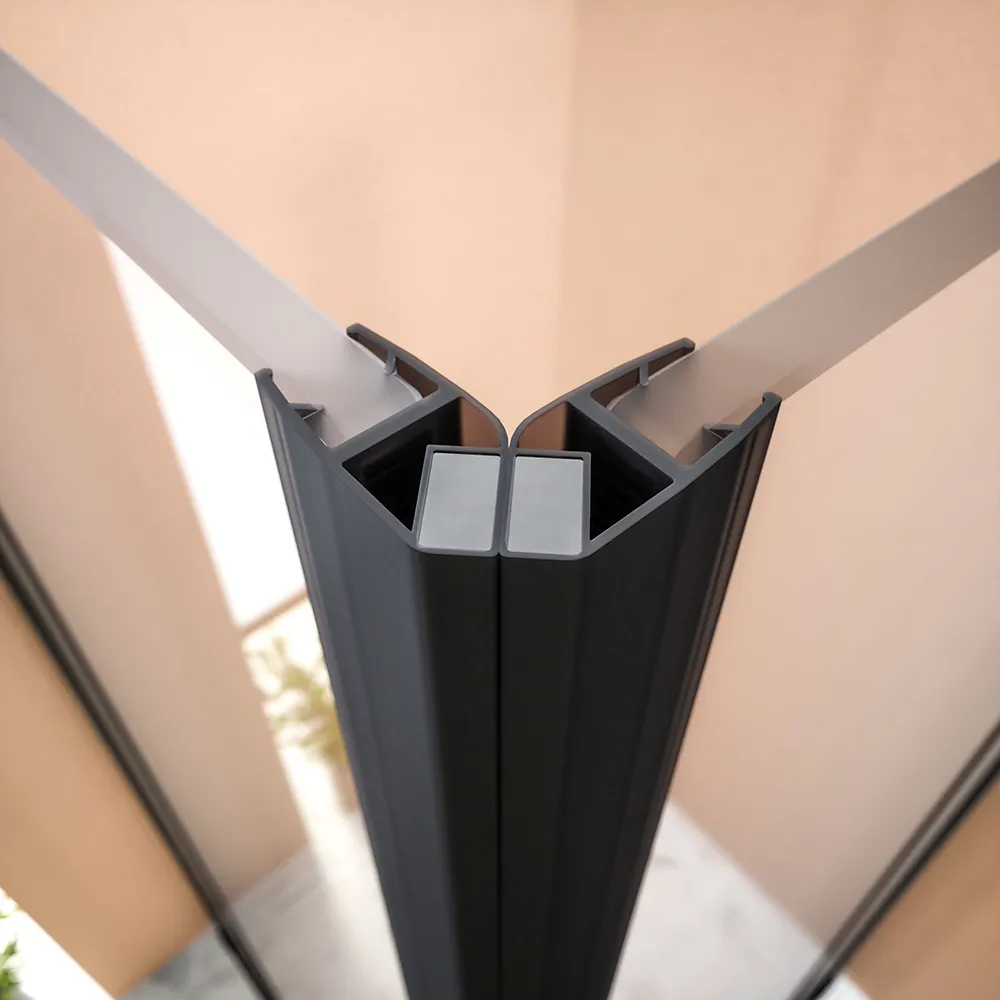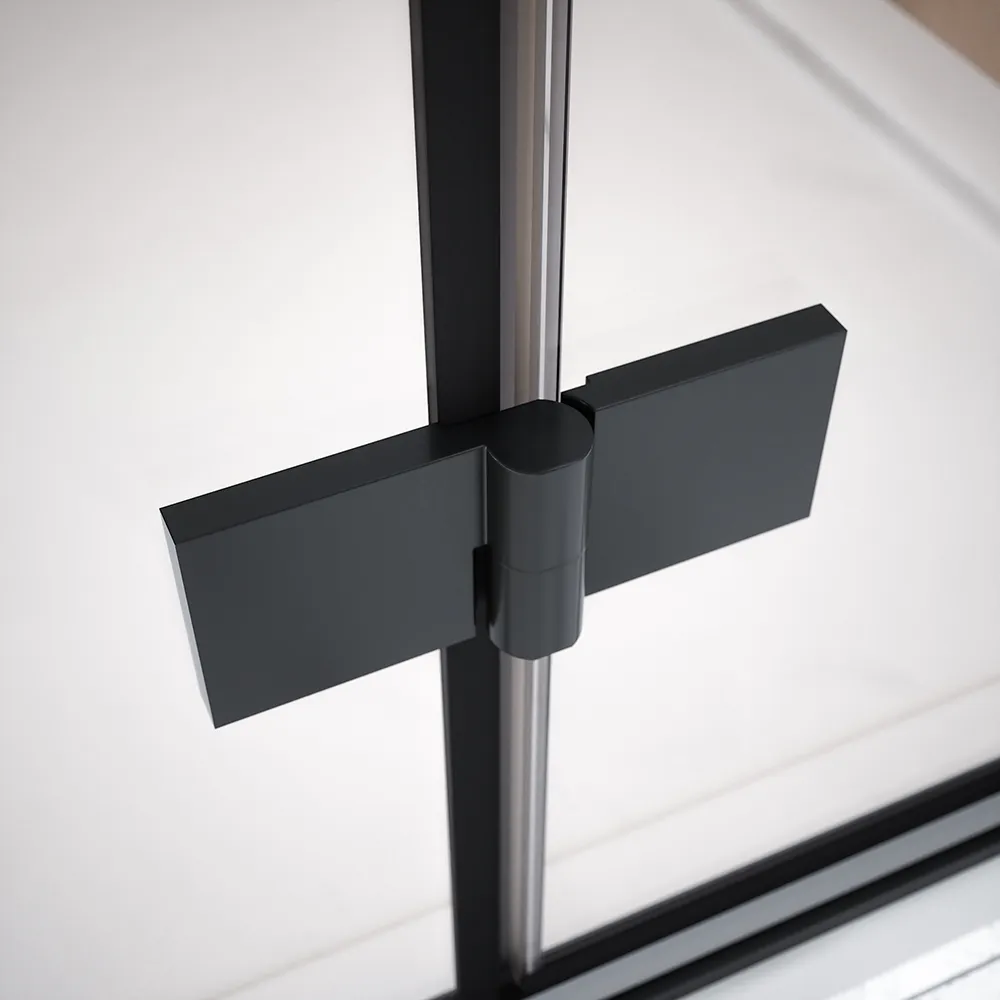 Ogni dettaglio di questa porta doccia è pensato per aggiungere un tocco di eleganza al tuo bagno. I profili in alluminio con una finitura nero opaco conferiscono un aspetto moderno e minimalista, mentre le cerniere in ottone creano un contrasto affascinante e di classe.