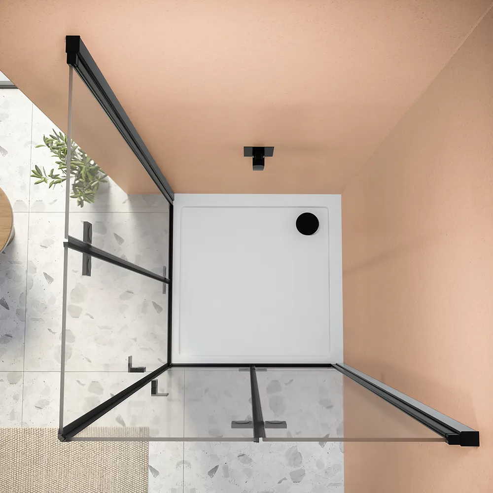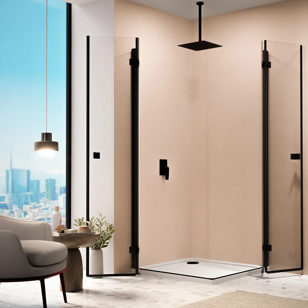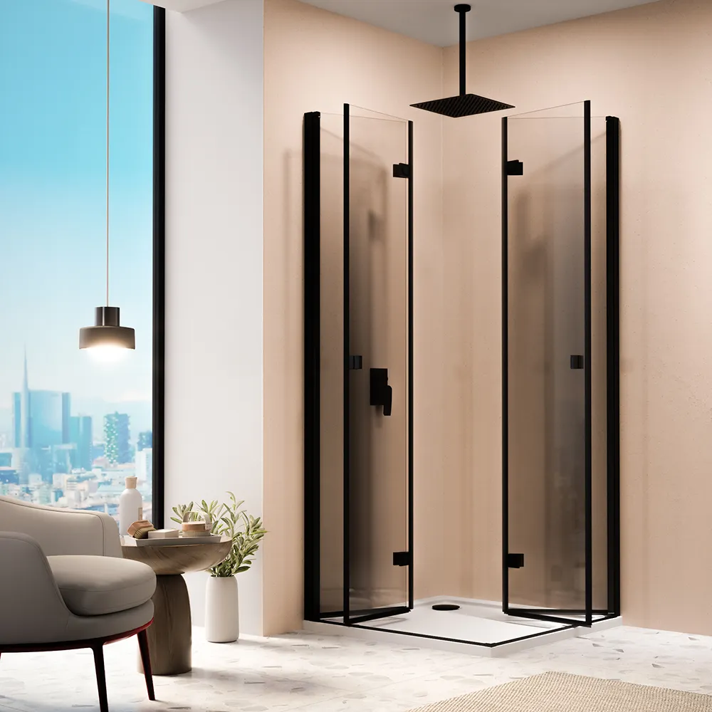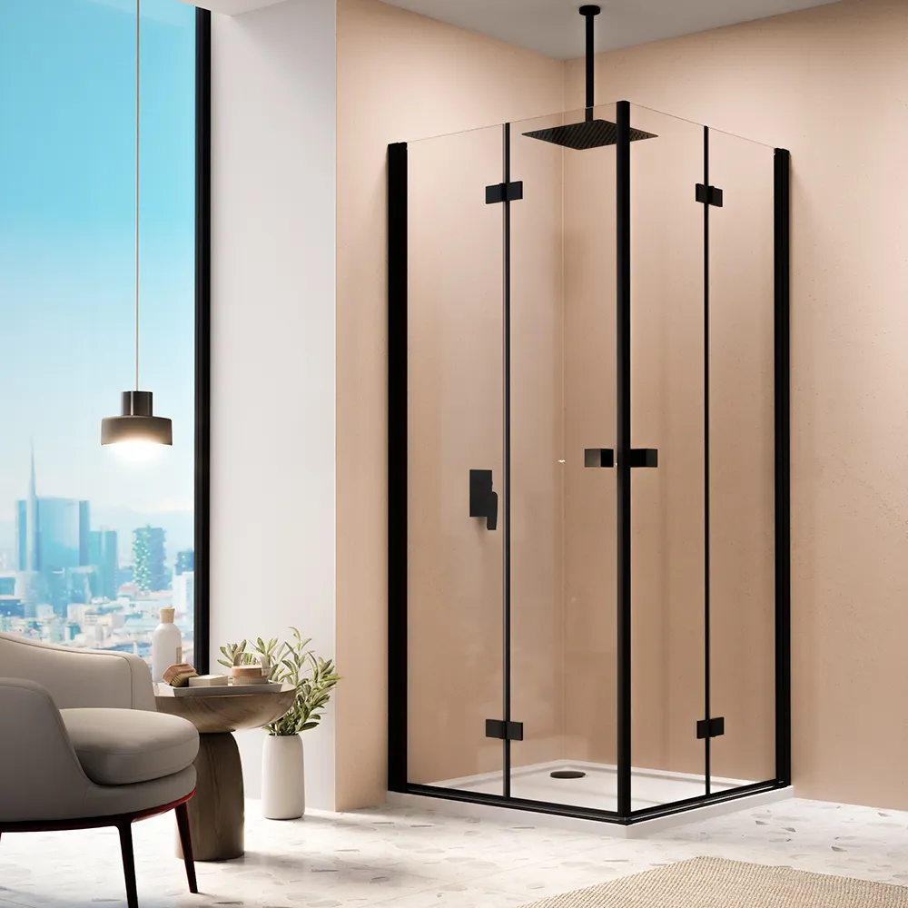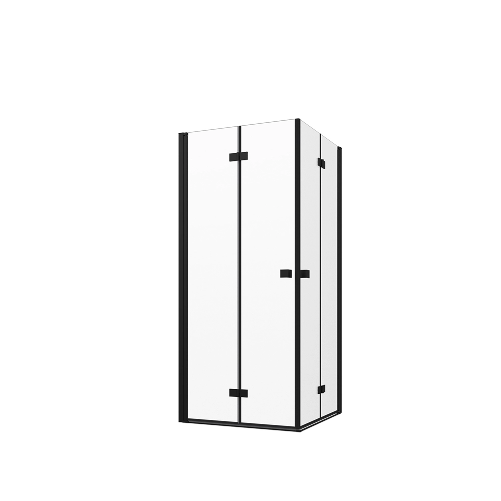 Box doccia angolare 70x90cm doppia anta a libro profili nero opaco e vetro da 8mm trasparente h195 | Fiji