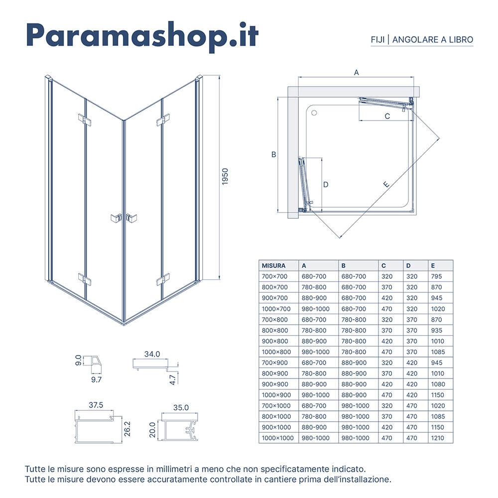 Il box doccia angolare modello Fiji 70x90cm è composto da due porte a libro. Quest'ultime si aprono separatamente: una con apertura a destra da 70cm e l'altra con apertura a sinistra da 90cm, offrendo un ampio ingresso e facilitando l'accesso al box senza creare ingombri. Questo design innovativo permette di ottenere un ingresso pratico e spazioso, evitando ingombri. L'apertura a libro, infatti, è studiata per non interferire con il resto dell’ambiente, consentendo di sfruttare al meglio lo spazio disponibile.