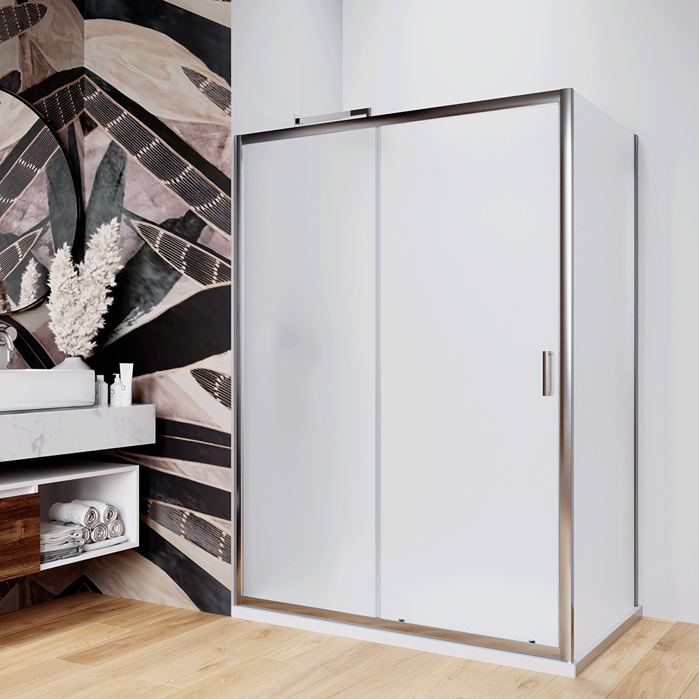 Box doccia angolare 80x110 cm con apertura scorrevole da 110 cm, parete fissa da 80 cm e vetro temperato antinfortunistico opaco da 6mm mod. Bali