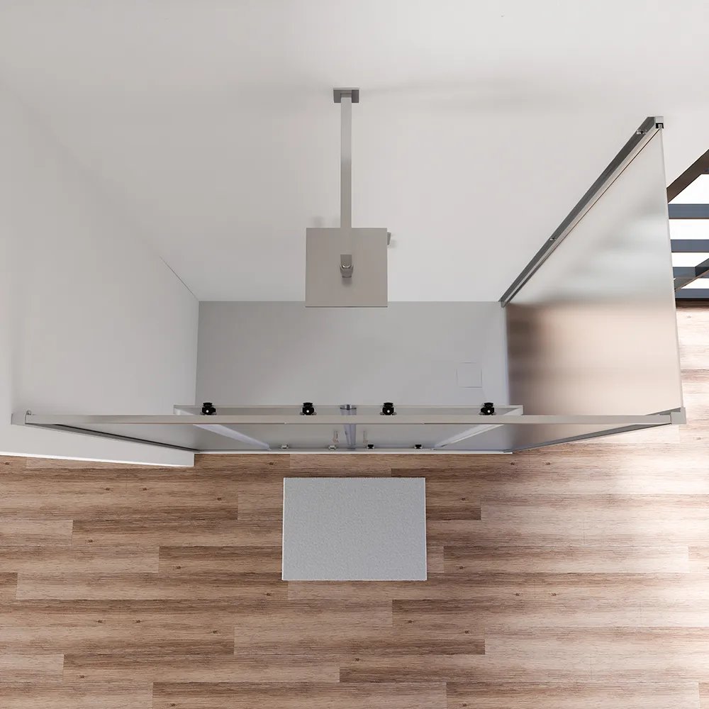L'apertura scorrevole è una pratica soluzione per ambienti bagno dove la conformazione della stanza e la disposizione degli arredi non consentono altre tipologie di aperture. La fluidità dello scorrimento è garantita da 16 carrelli scorrevoli testati per oltre 100.000 aperture. Le ante scorrevoli sono dotate un comodo meccanismo di sgancio rapido utile a semplificare le operazioni di pulizia. Particolare attenzione è stata poi data alle finiture, infatti le cover in ABS dei carrelli sono in colore cromato, in perfetto abbinamento ai profili in alluminio.Installazione reversibile e tolleranza